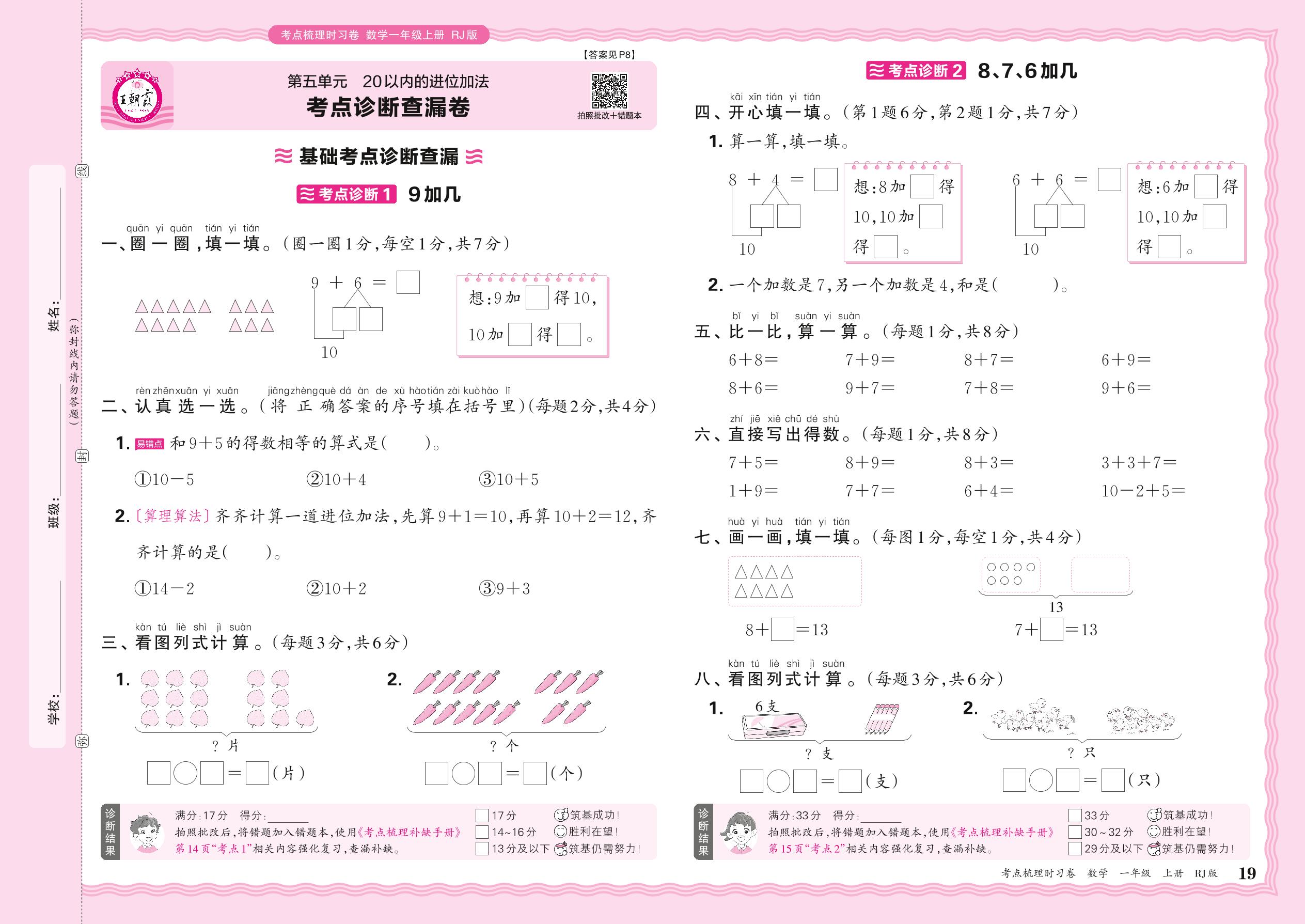 2024秋上册一年级数学人教版 第五单元 考点诊断查漏卷