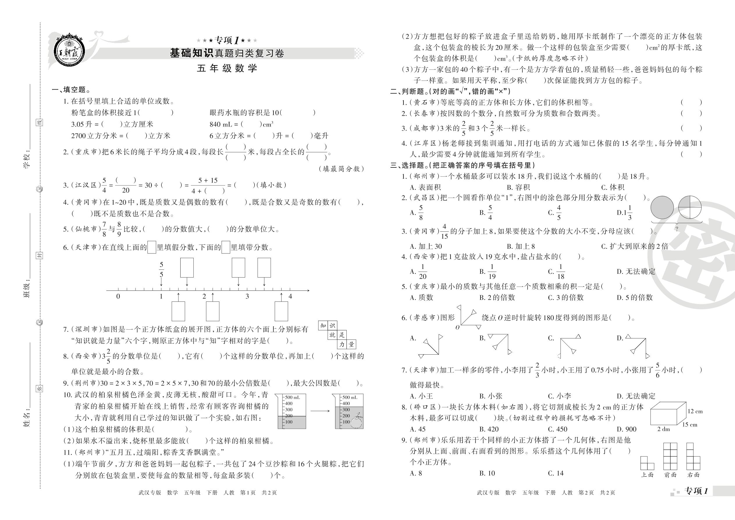 王朝霞期末专项卷——基础知识、基本运算真题归类复习五年级下册数学(人教版)【0】