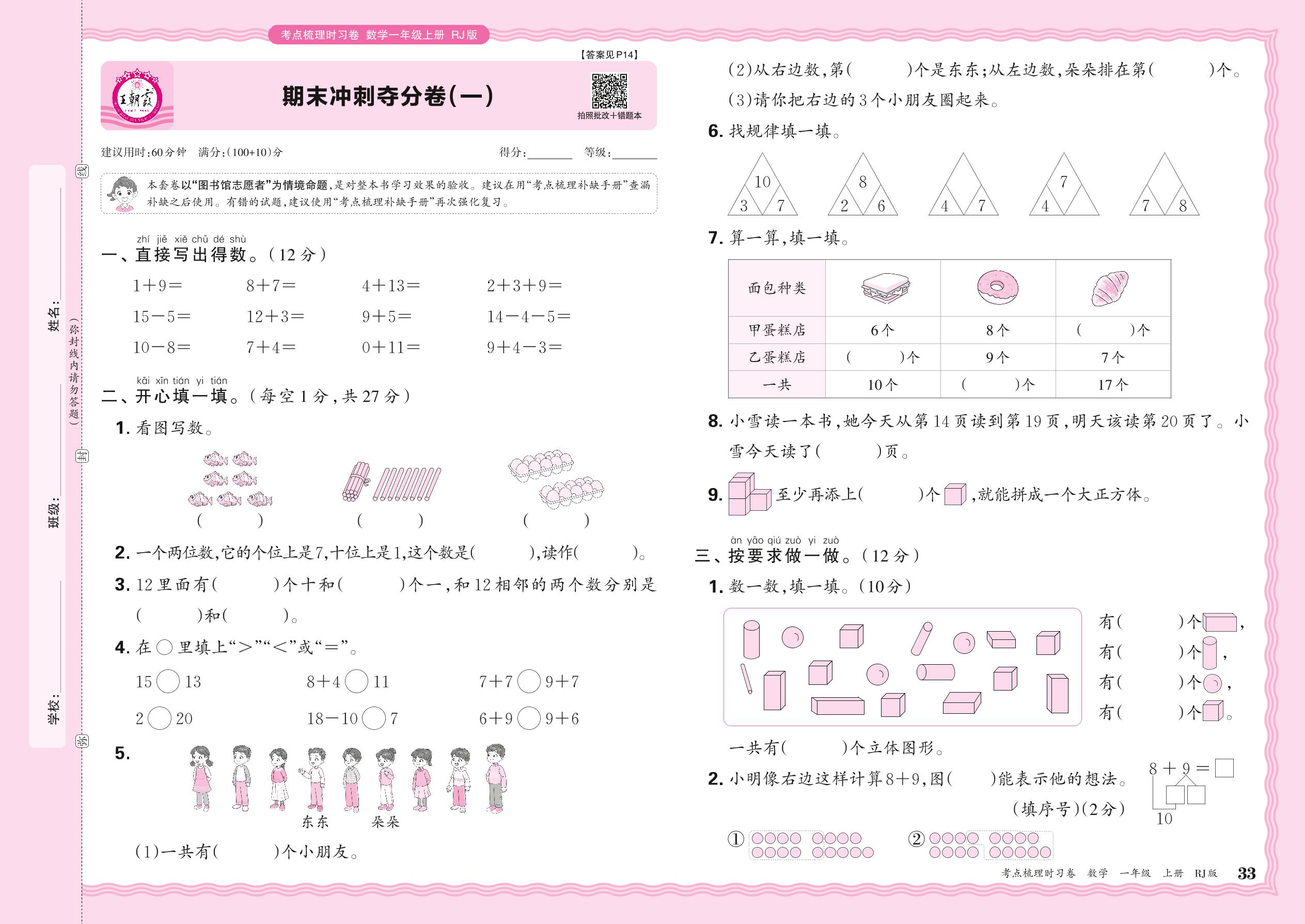 2024秋上册一年级数学人教版 期末冲刺夺分卷(一)