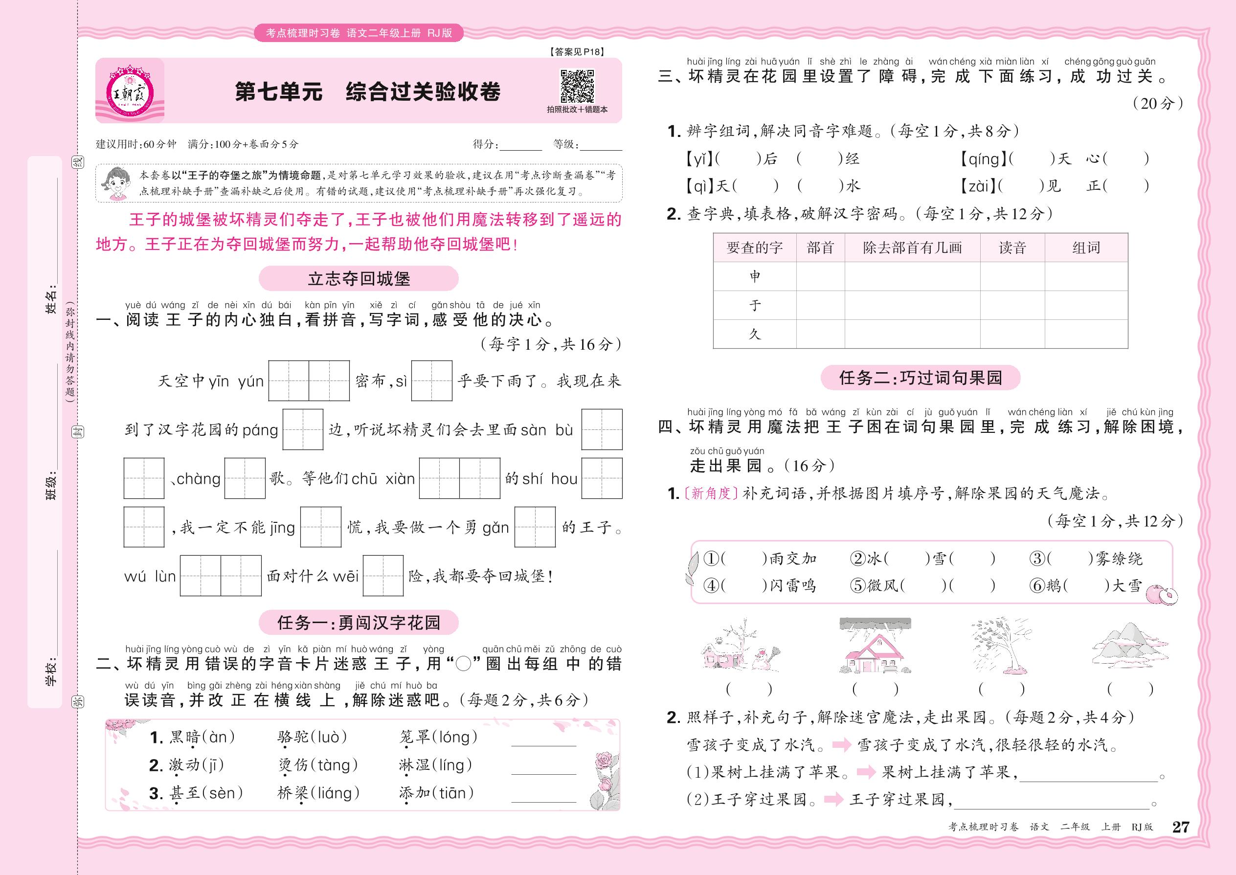 2024秋上册二年级语文人教版 第七单元 综合过关验收卷