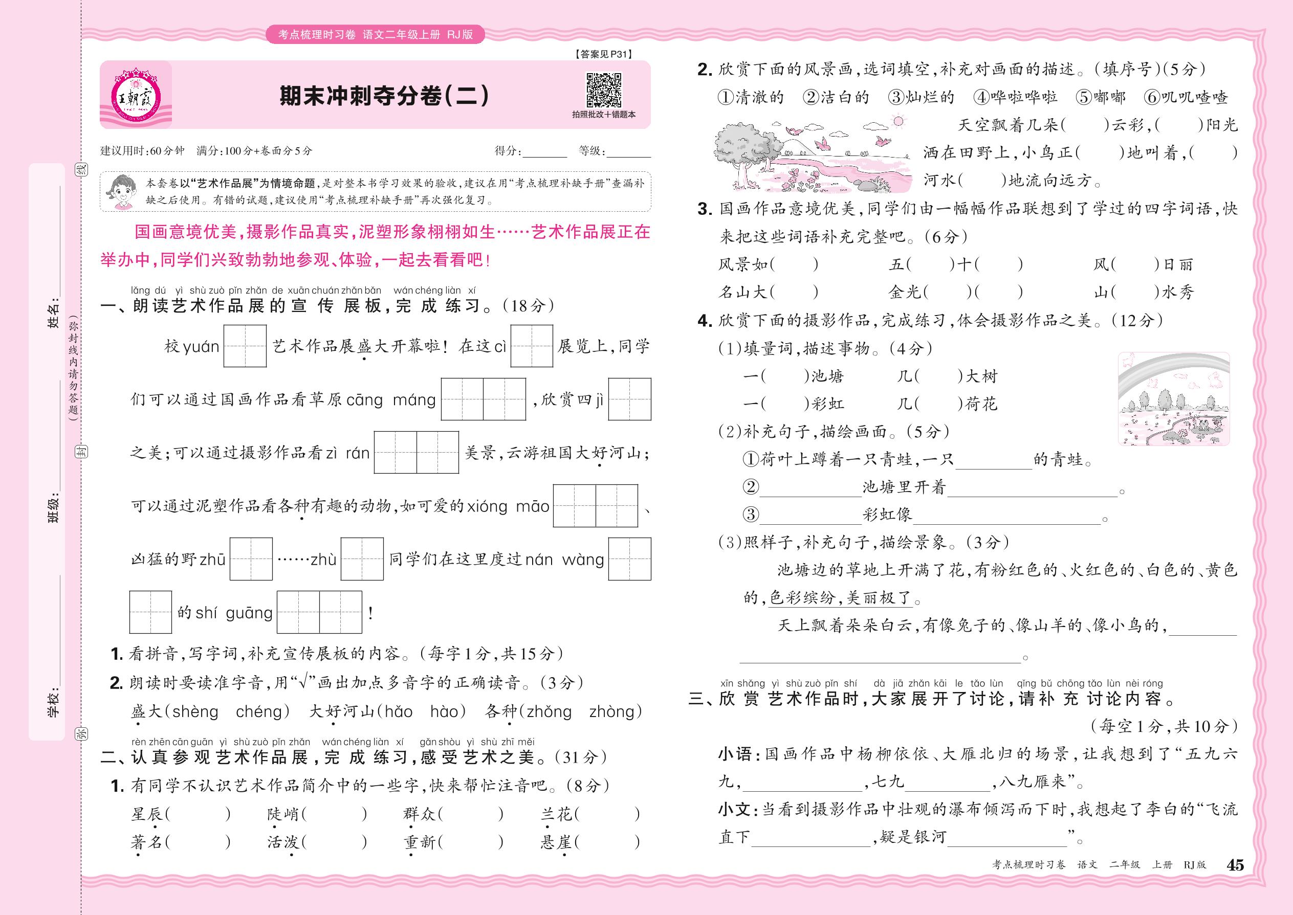 2024秋上册二年级语文人教版 期末冲刺夺分卷(二)