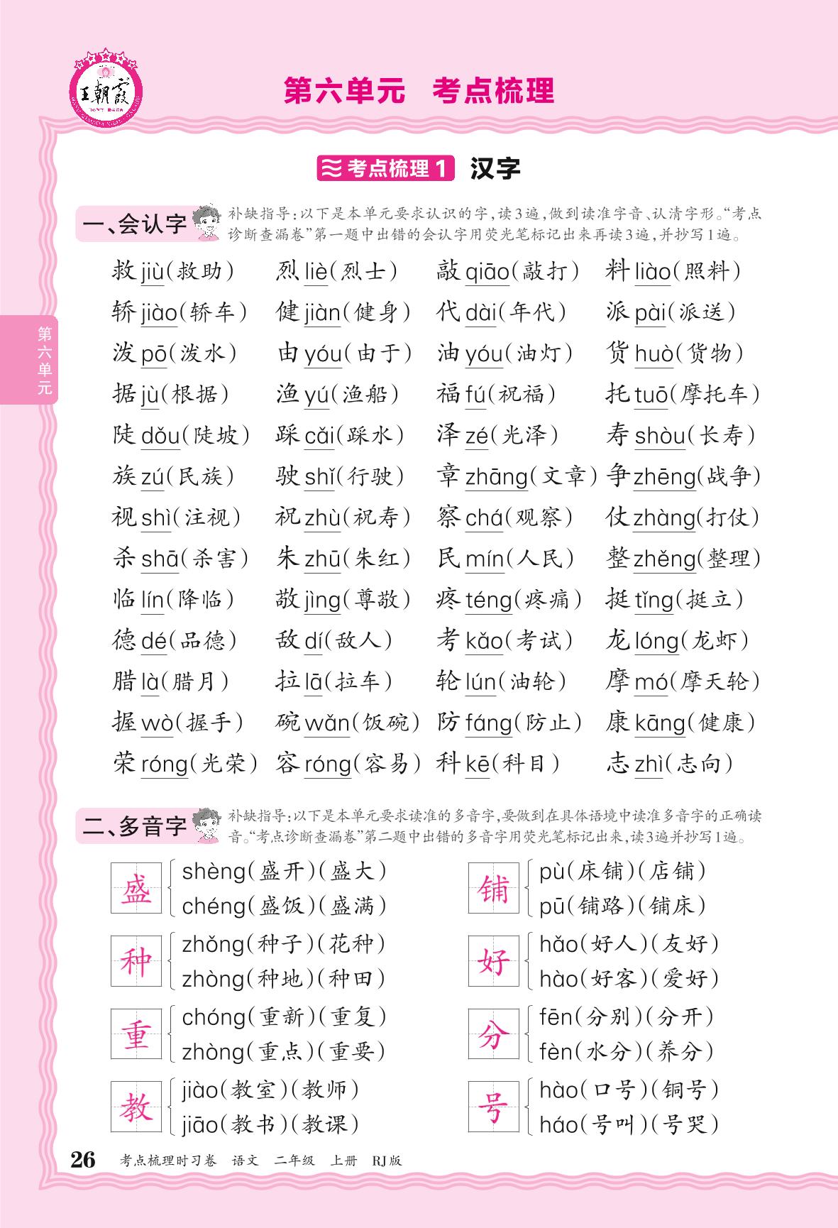 2024秋上册二年级语文人教版 考点梳理补缺手册——第六单元