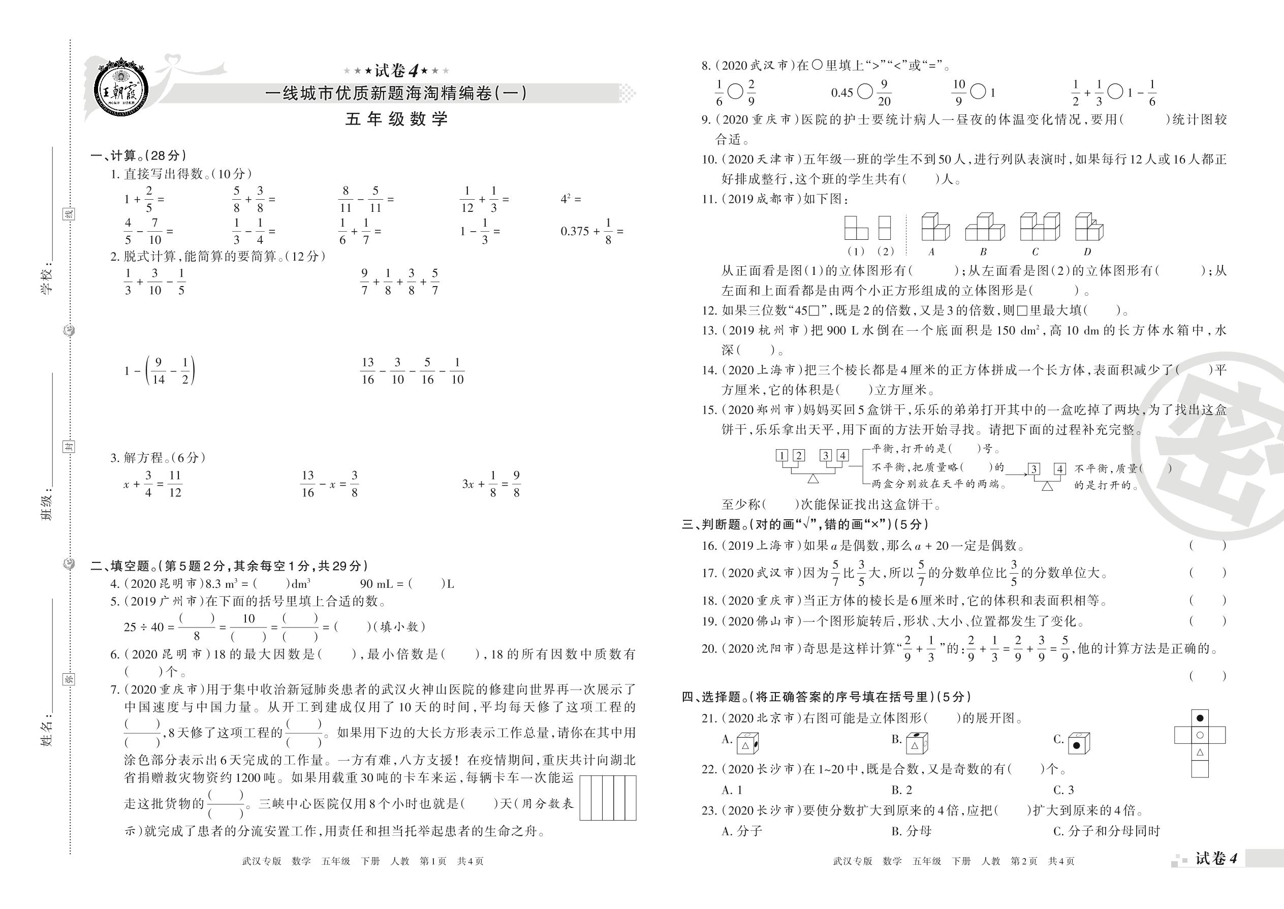 王朝霞海淘期末精编卷五年级下册数学(人教版)_R210804163617【4】