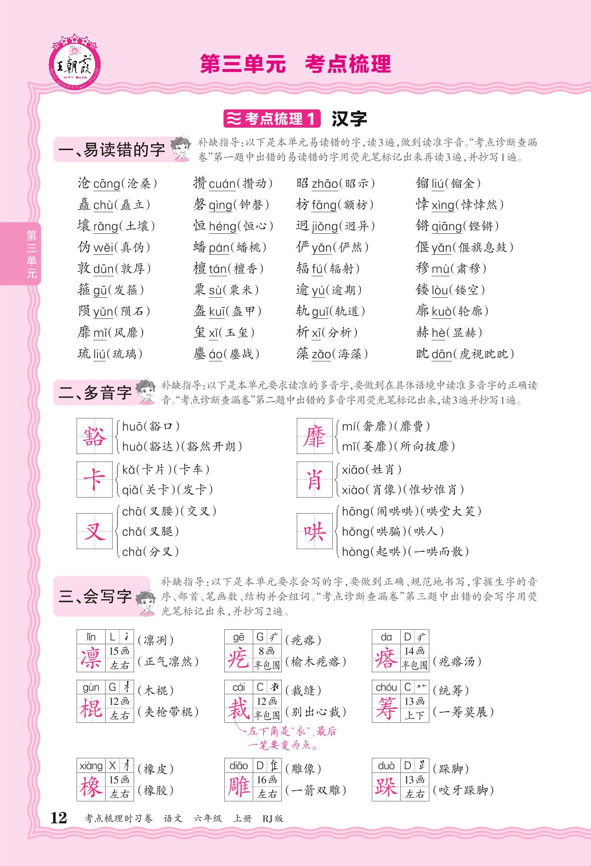 2024秋上册六年级语文人教版 考点梳理补缺手册——第三单元