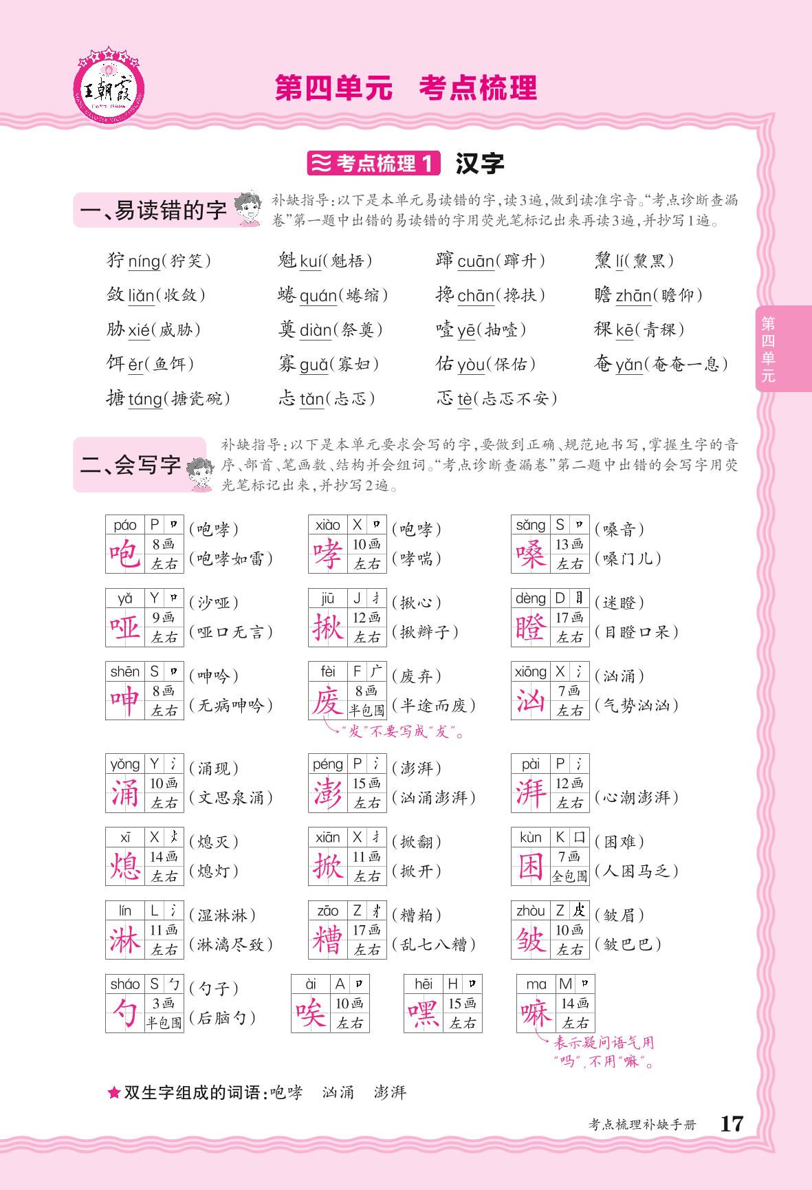 2024秋上册六年级语文人教版 考点梳理补缺手册——第四单元