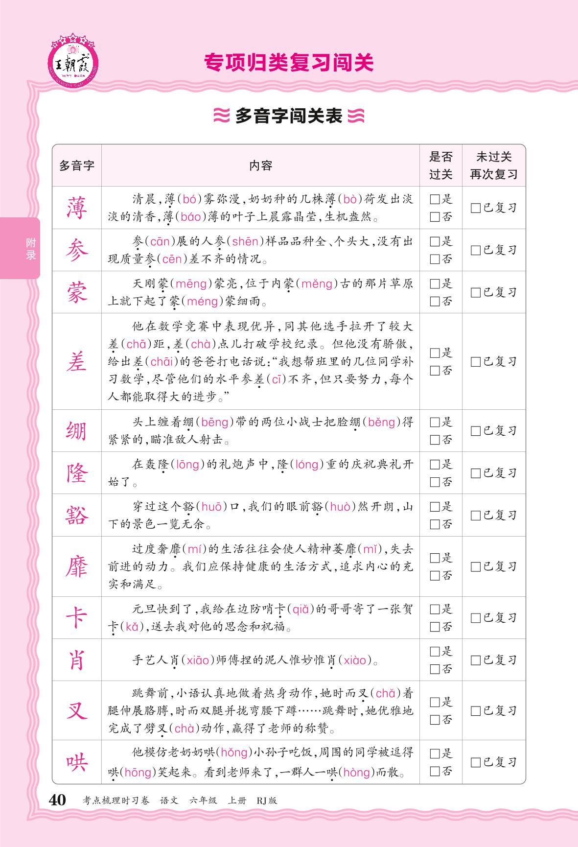 2024秋上册六年级语文人教版 考点梳理补缺手册——专项归类复习闯关