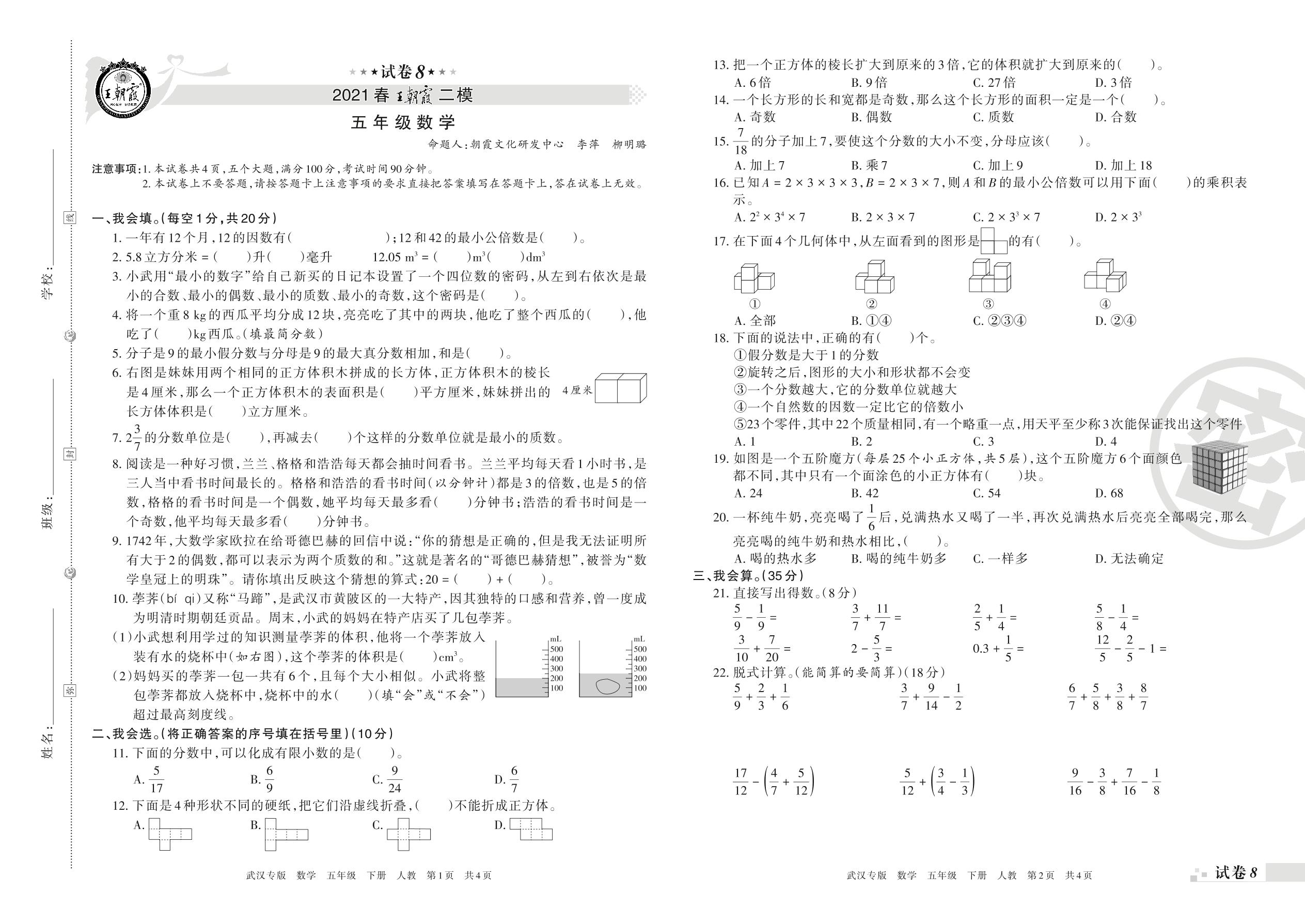 王朝霞期末模拟卷五年级下册数学(人教版)_R210804163632【8】