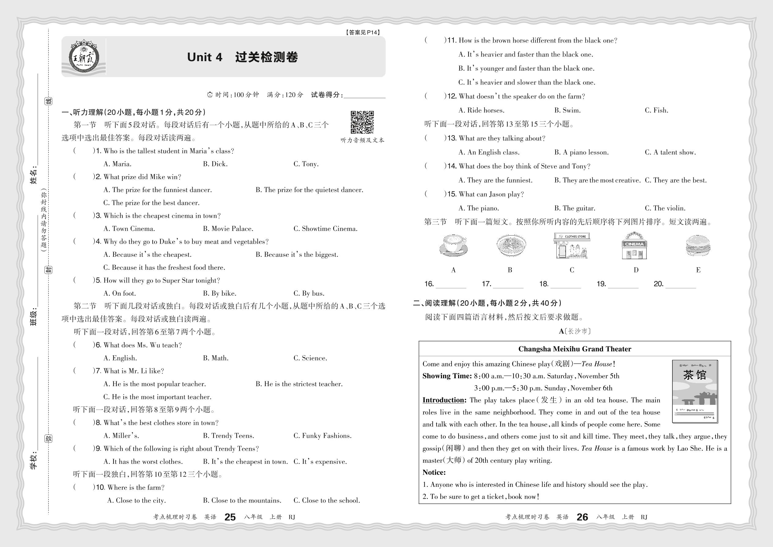 八年级英语人教版上册单元卷
