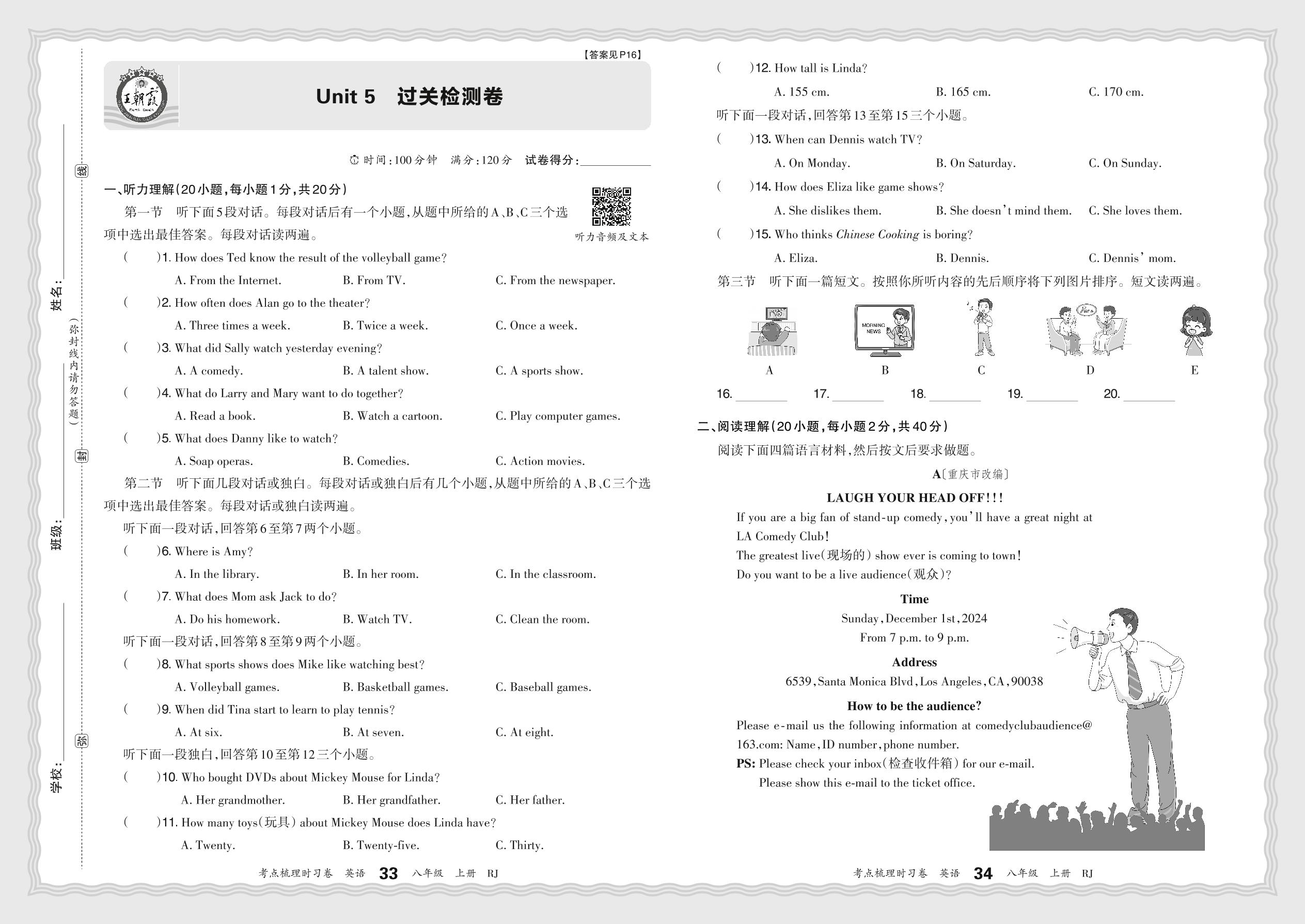 2024秋上册八年级英语人教版 Unit 5 过关检测卷