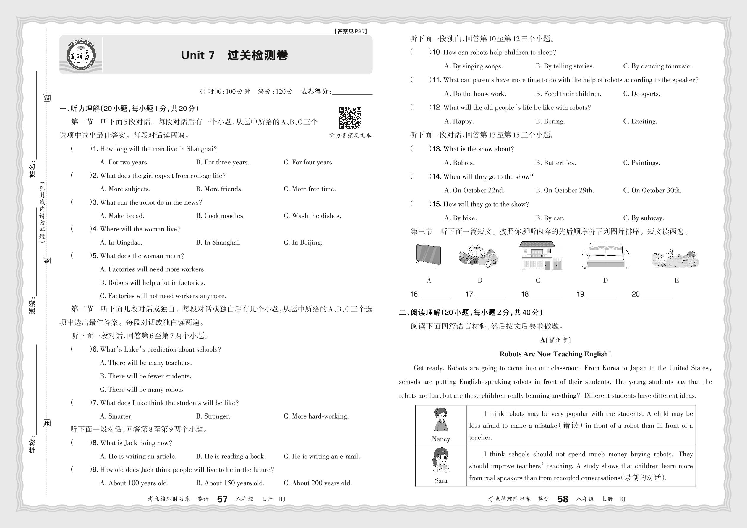 2024秋上册八年级英语人教版 Unit 7 过关检测卷