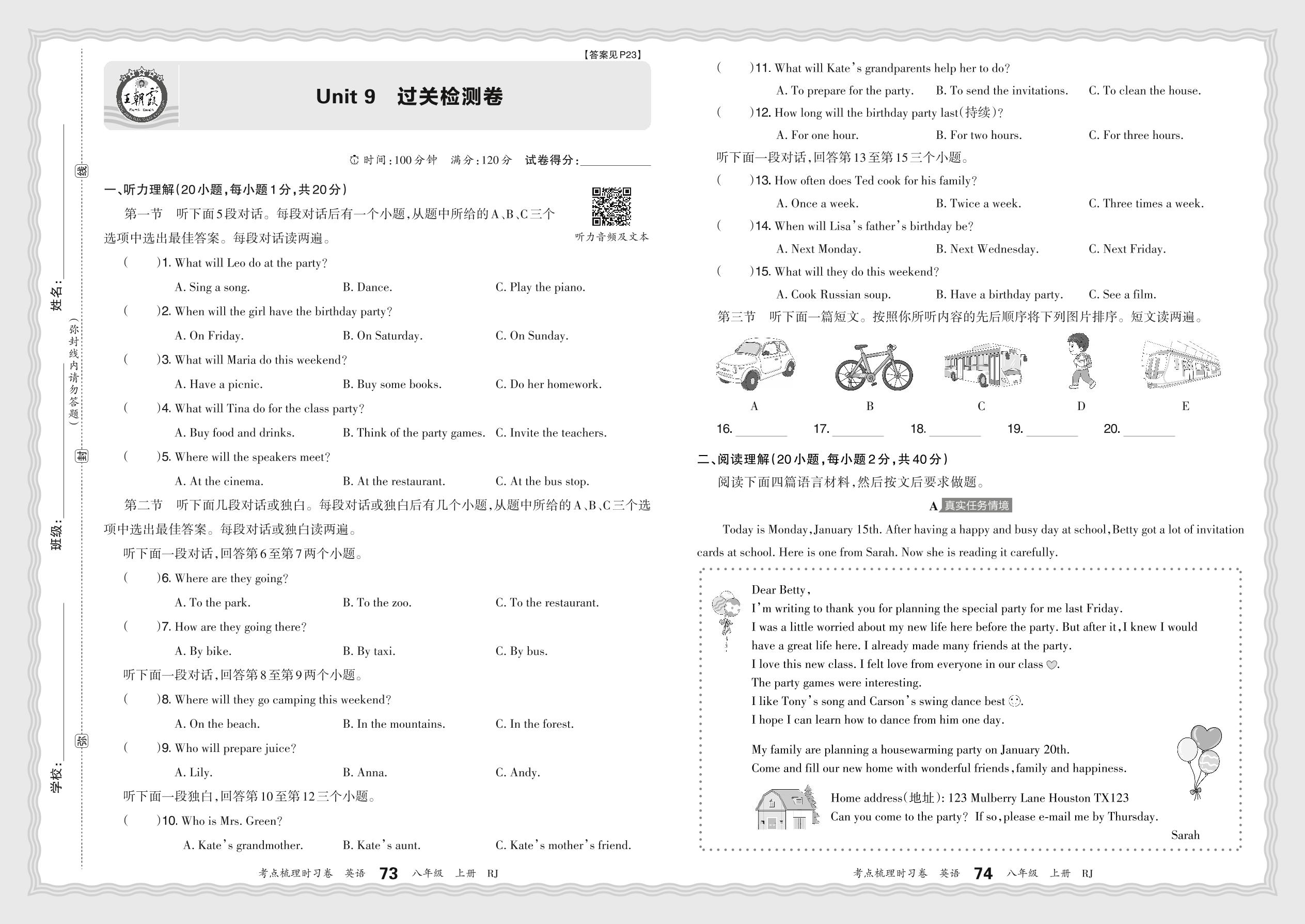 八年级英语人教版上册单元卷