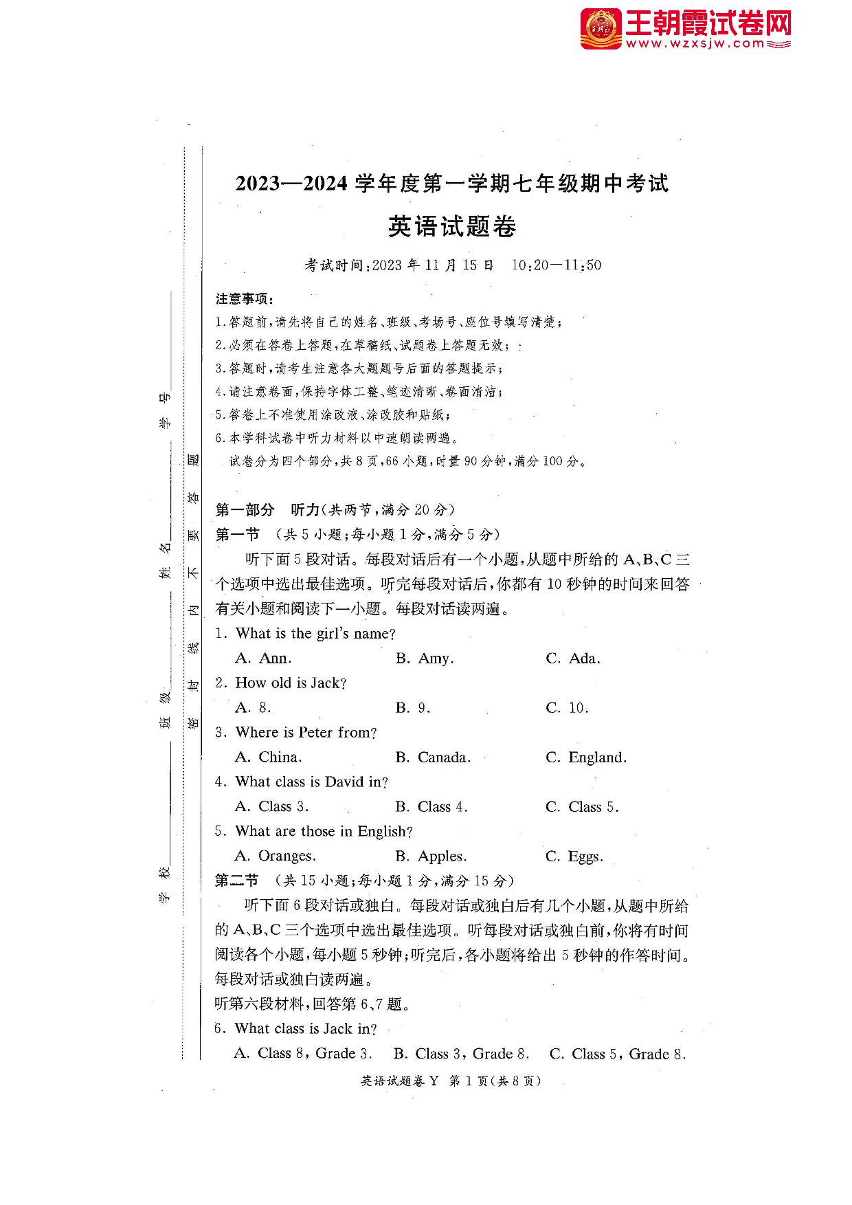 湖南省长沙市一中教育集团2023-2024学年度第一学期期中考试七年级英语(人教版)【无听力音频】