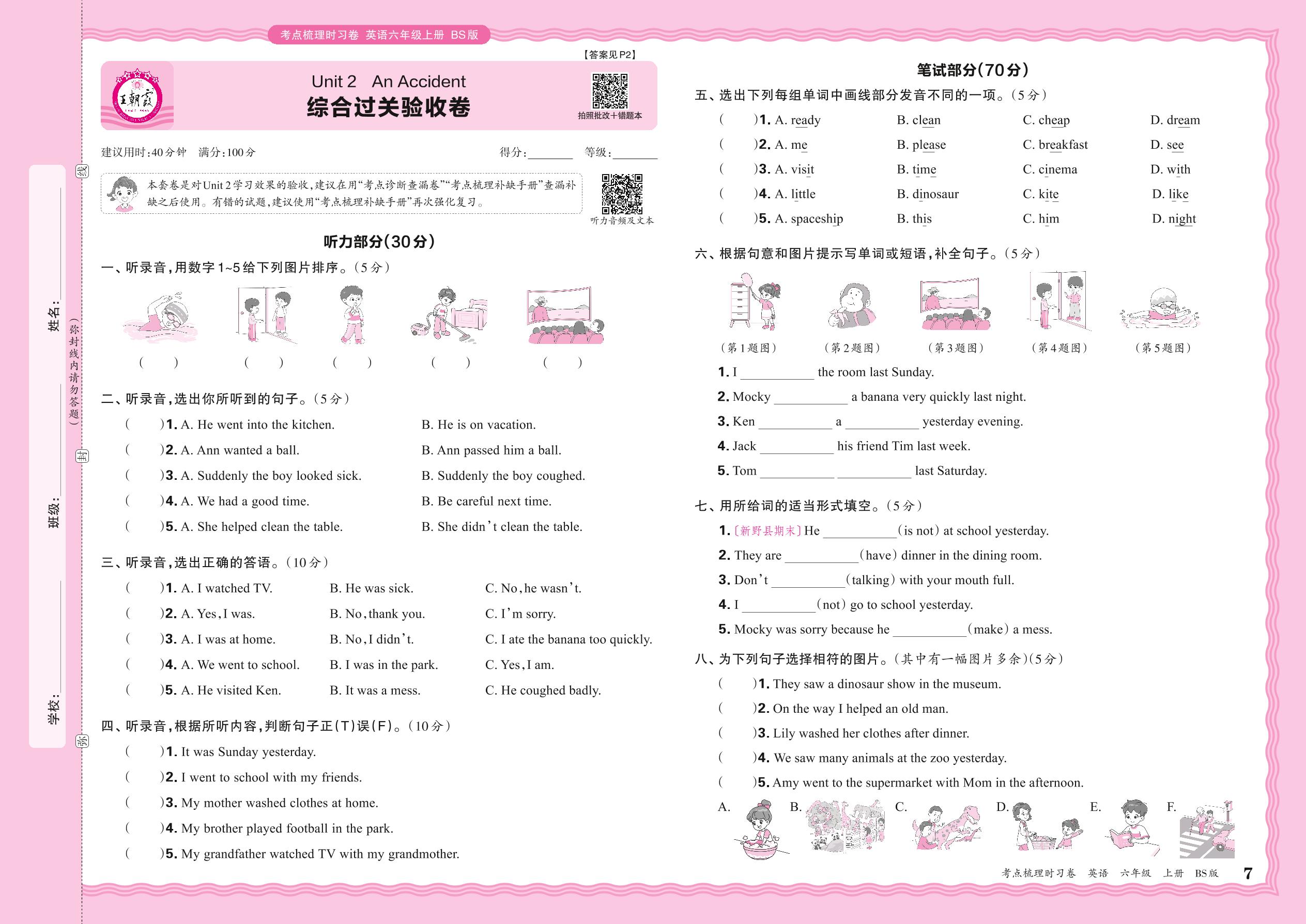 2024秋上册六年级英语北师版 Unit 2 综合过关验收卷