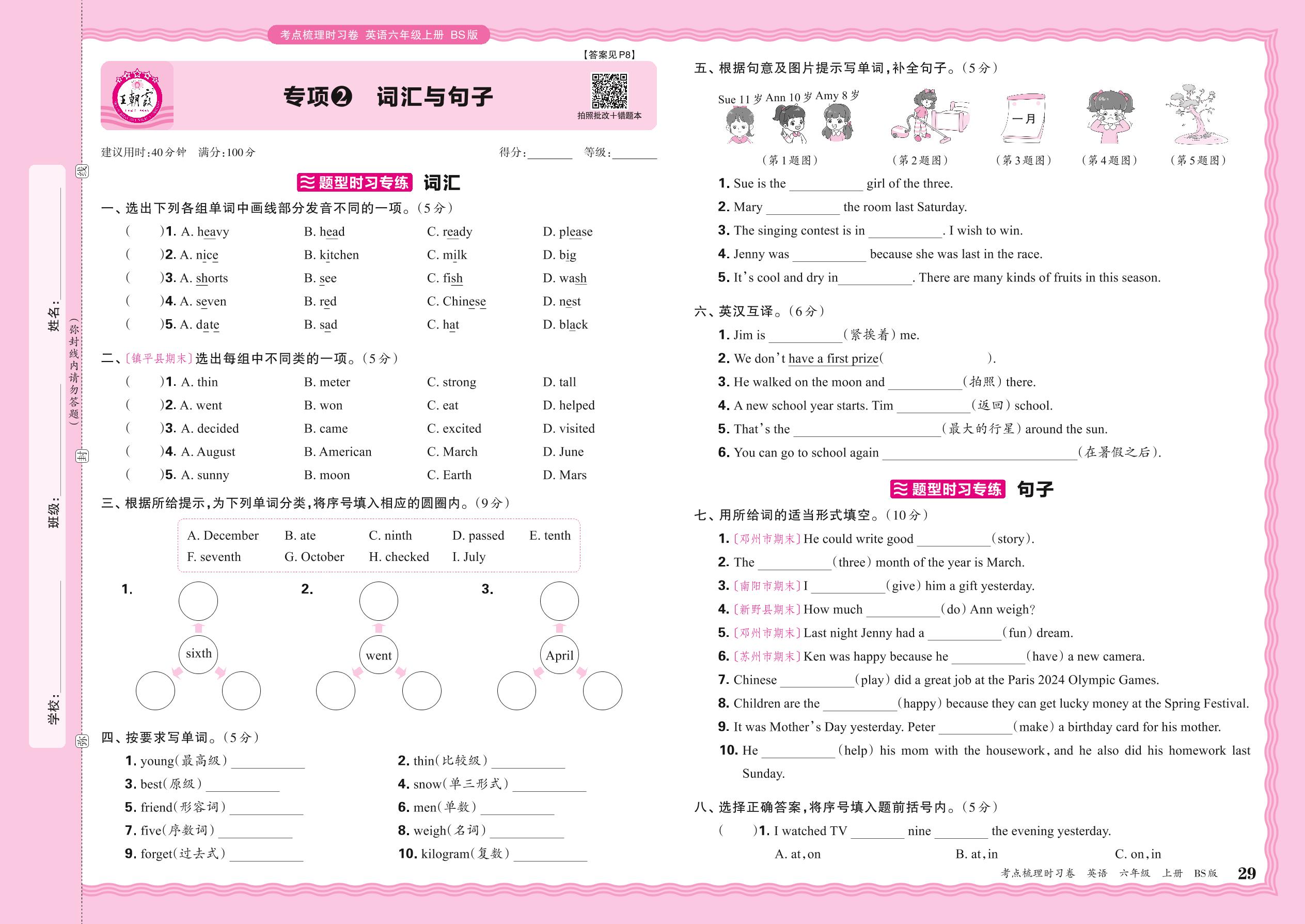 2024秋上册六年级英语北师版 期末专项卷KD版·词汇与句子【2】
