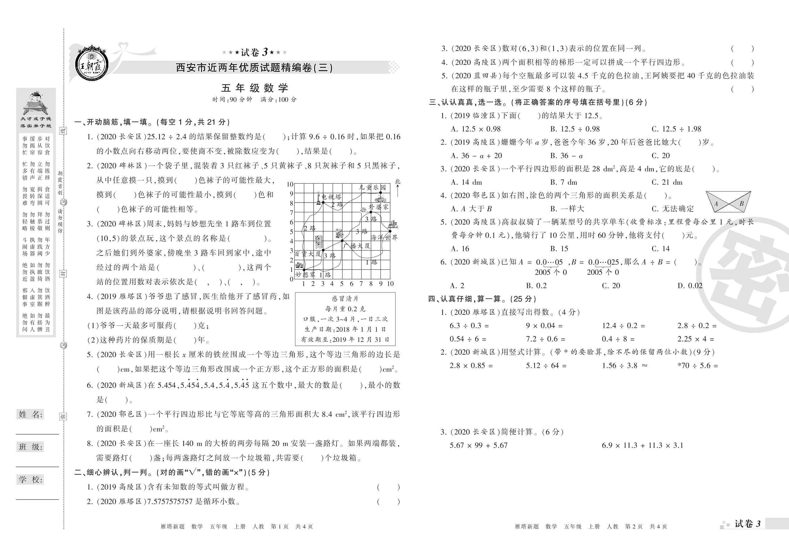 西安市近两年优质试题精编卷(三)五年级上册数学(人教版)【3】