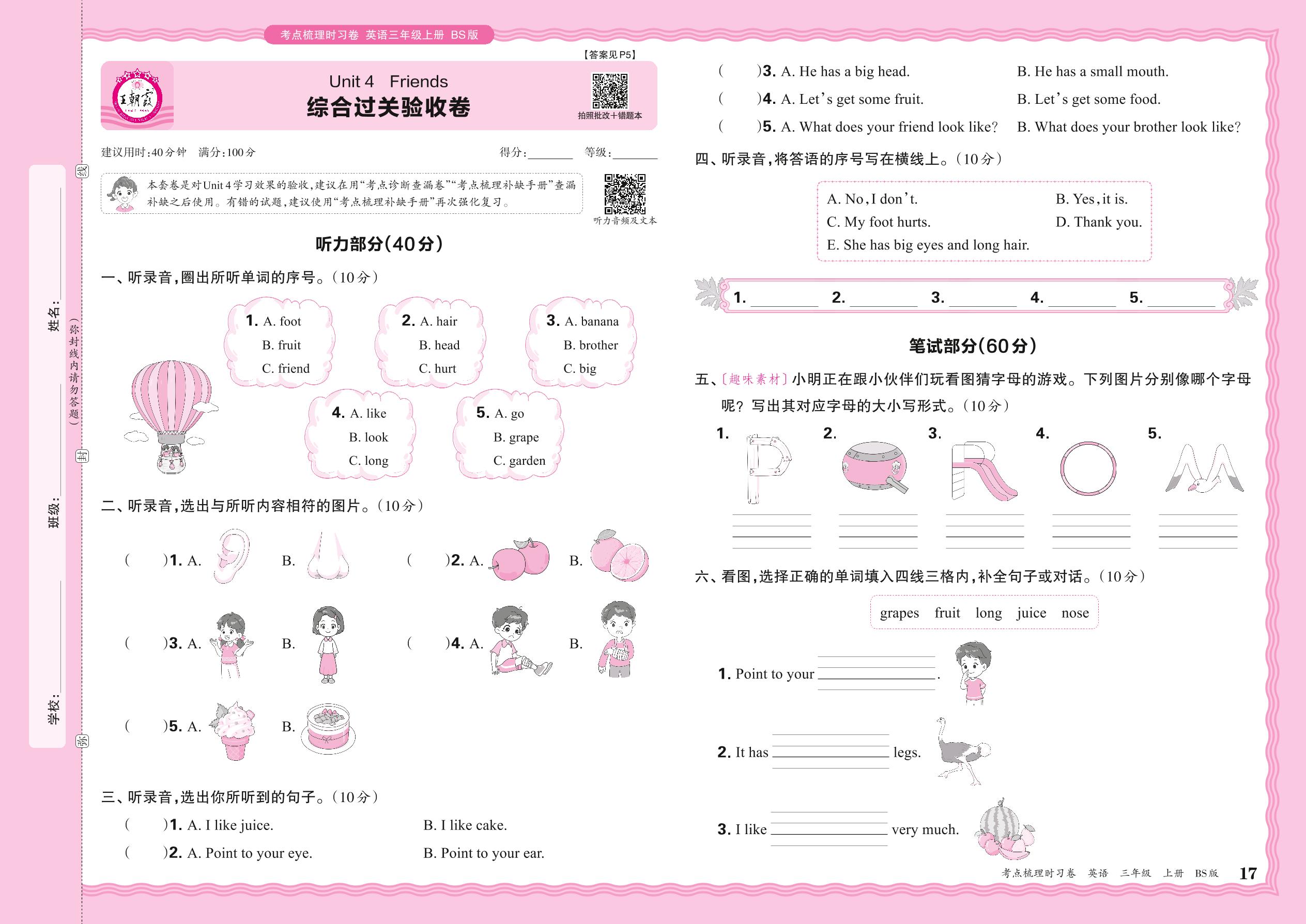 三年级英语北师版(2024)上册单元卷