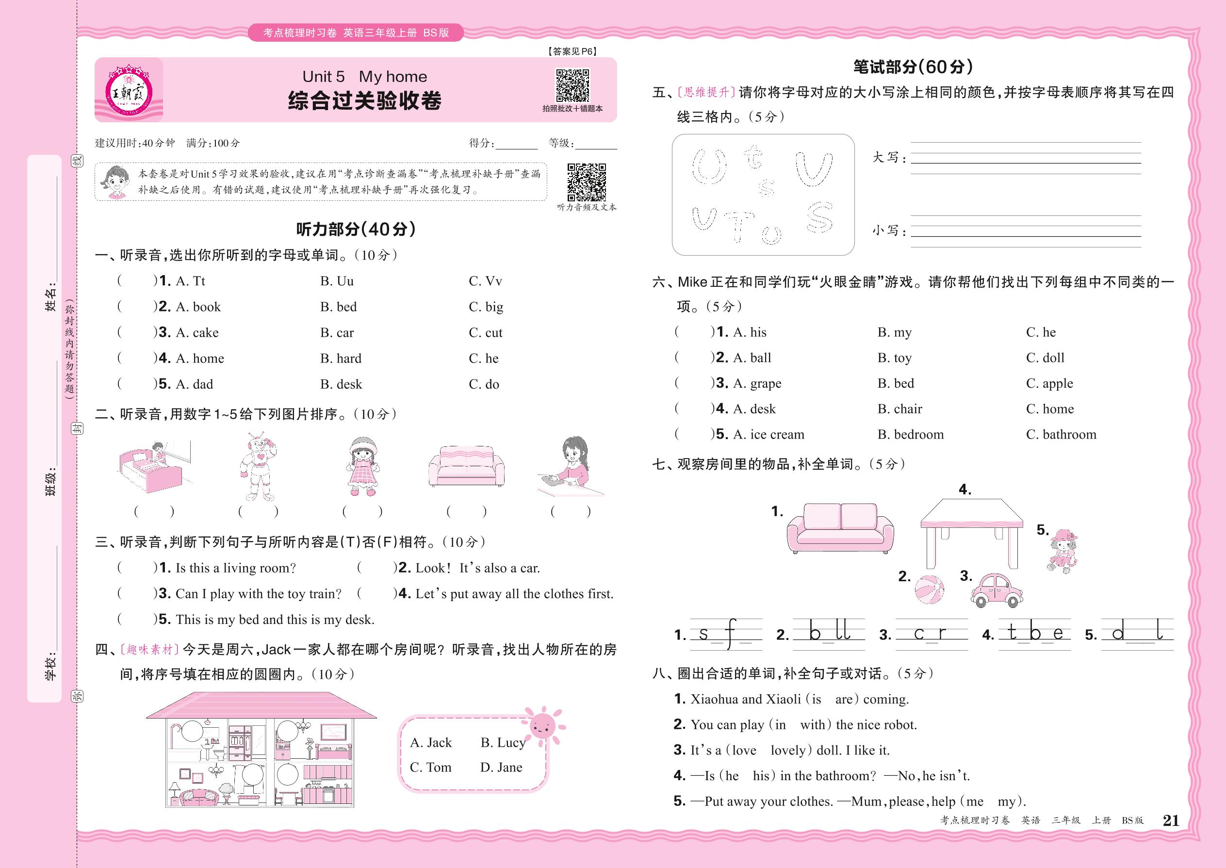 2024秋上册三年级英语北师版 Unit 5 综合过关验收卷