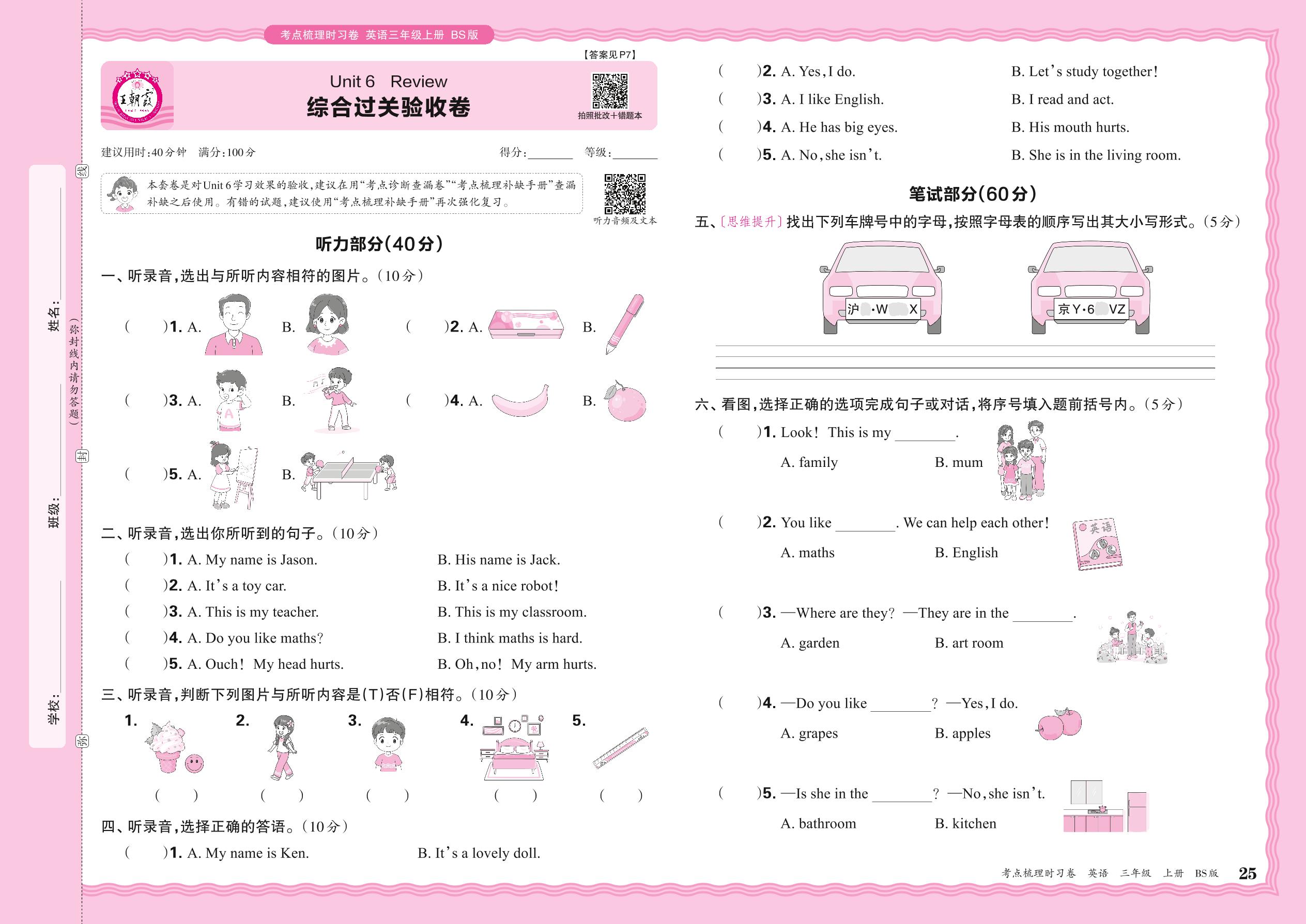 2024秋上册三年级英语北师版 Unit 6 综合过关验收卷