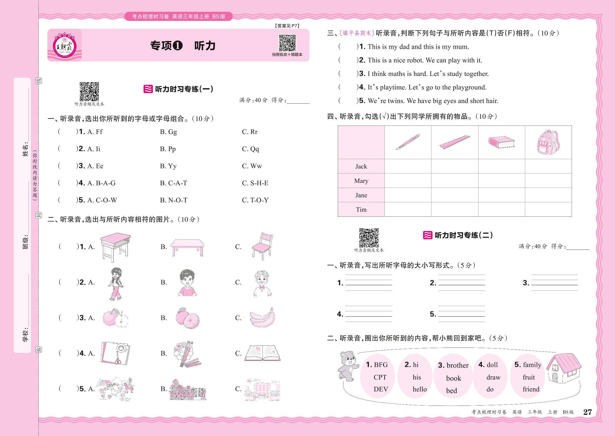 2024秋上册三年级英语北师版 期末专项卷KD版·听力【1】