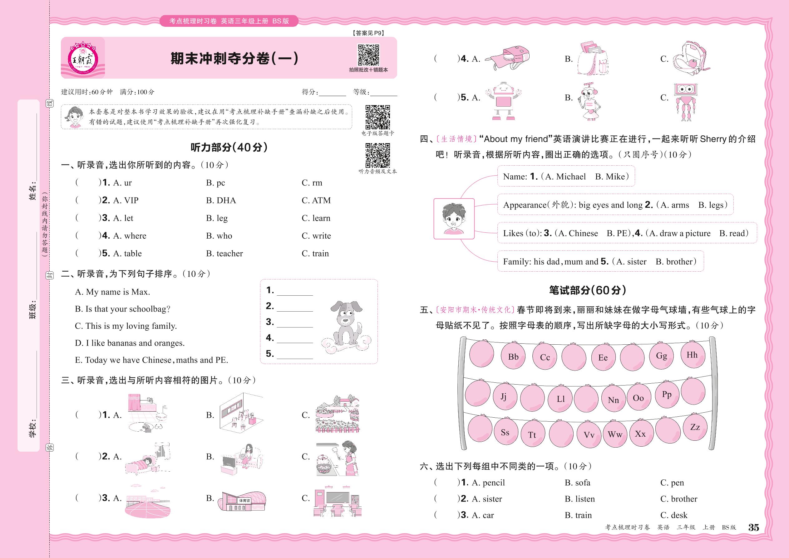 2024秋上册三年级英语北师版 期末冲刺夺分卷(一)