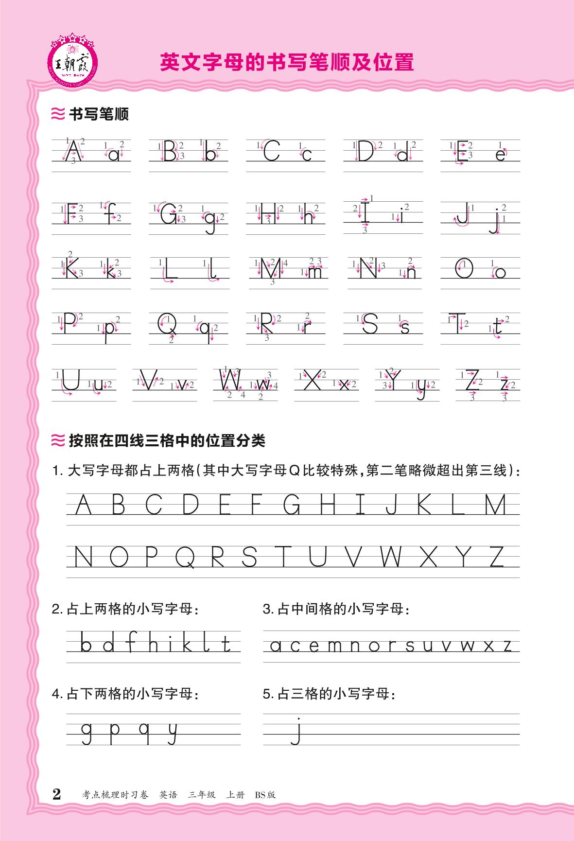 2024秋上册三年级英语北师版 考点梳理补缺手册——英文字母的书写笔顺及位置