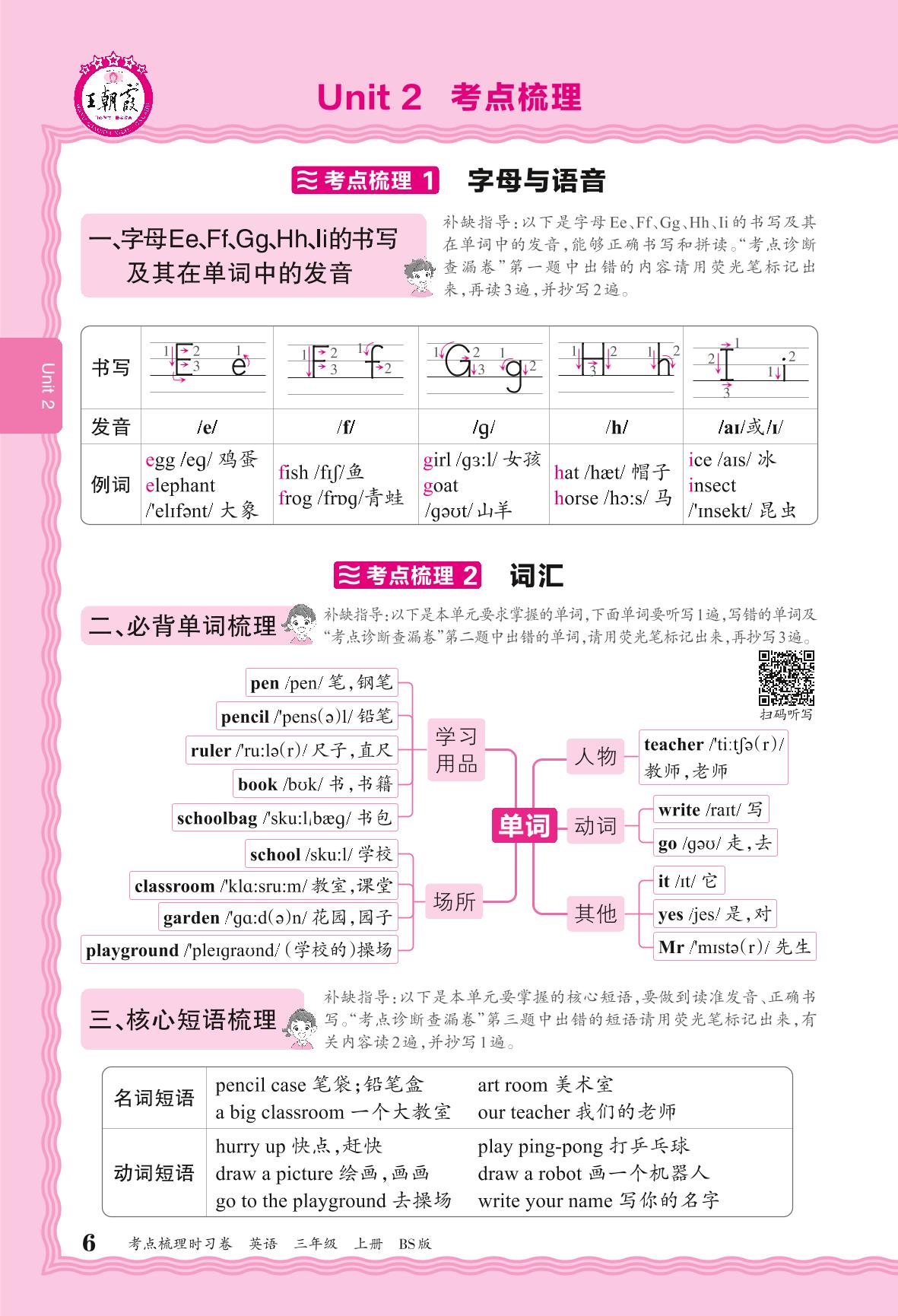 2024秋上册三年级英语北师版 考点梳理补缺手册——Unit 2 School life