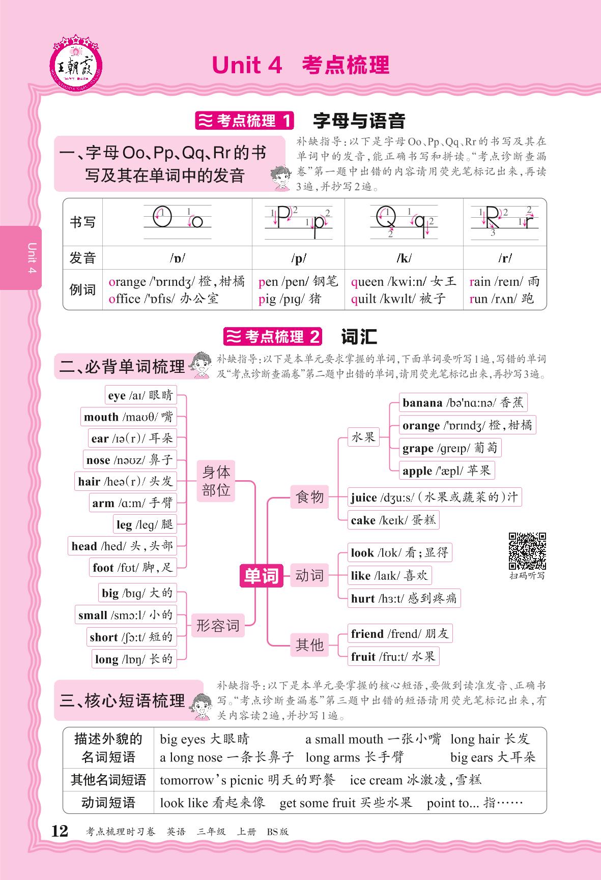 2024秋上册三年级英语北师版 考点梳理补缺手册——Unit 4 Friends