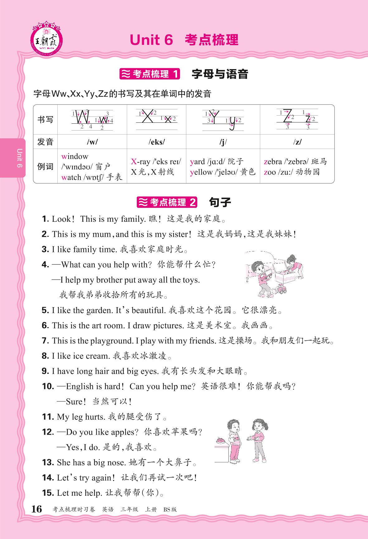2024秋上册三年级英语北师版 考点梳理补缺手册——Unit 6 Review