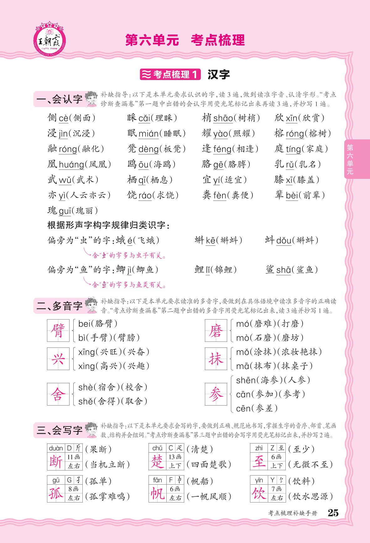 2024秋上册三年级语文人教版 考点梳理补缺手册——第六单元