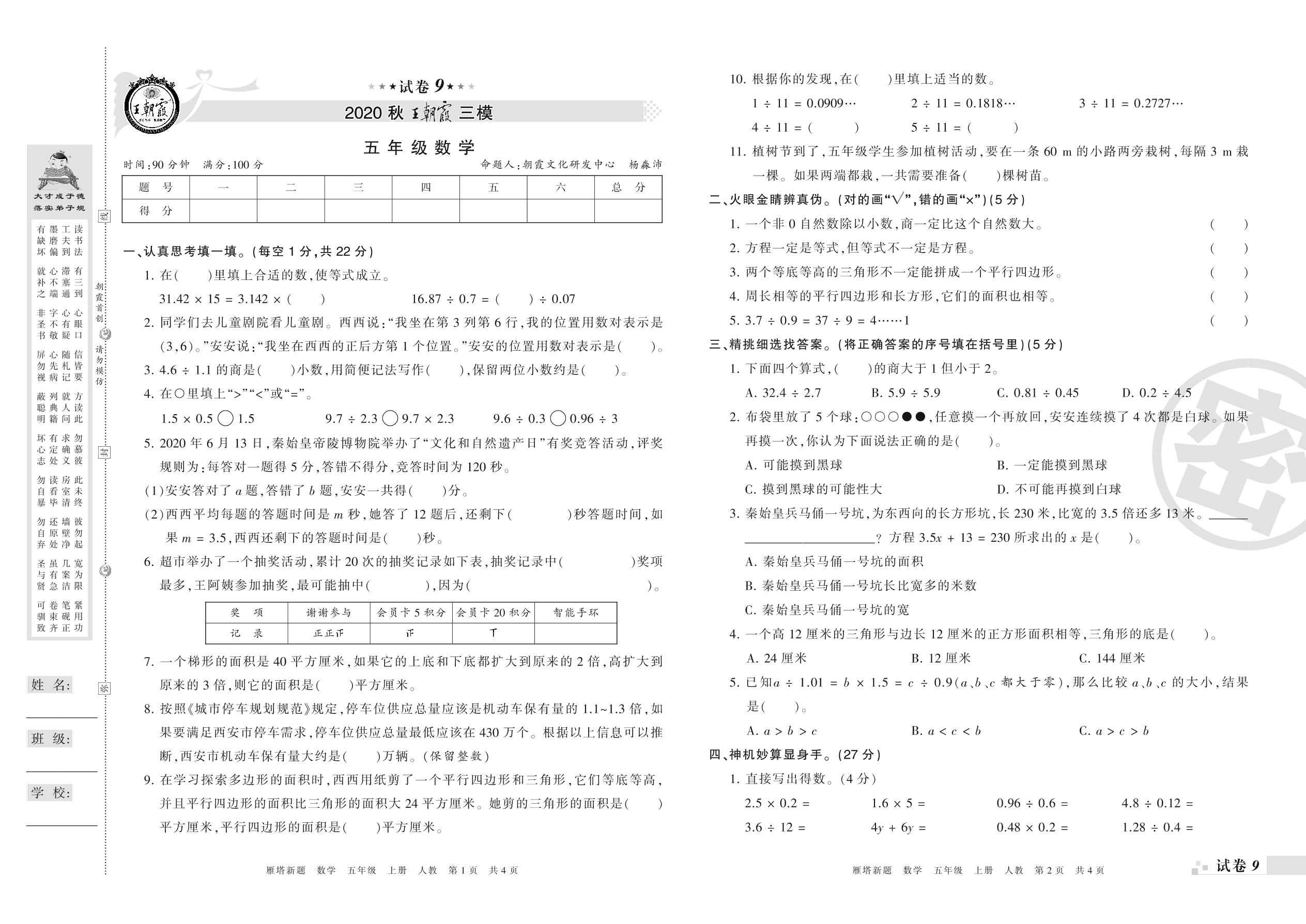 王朝霞期末模拟卷五年级上册数学(人教版)_R210804163727【9】