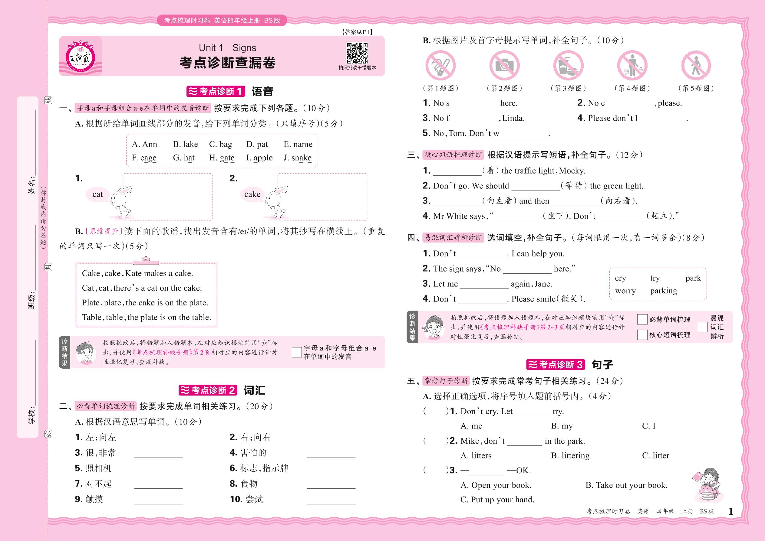 2024秋上册四年级英语北师版 Unit 1 考点诊断查漏卷