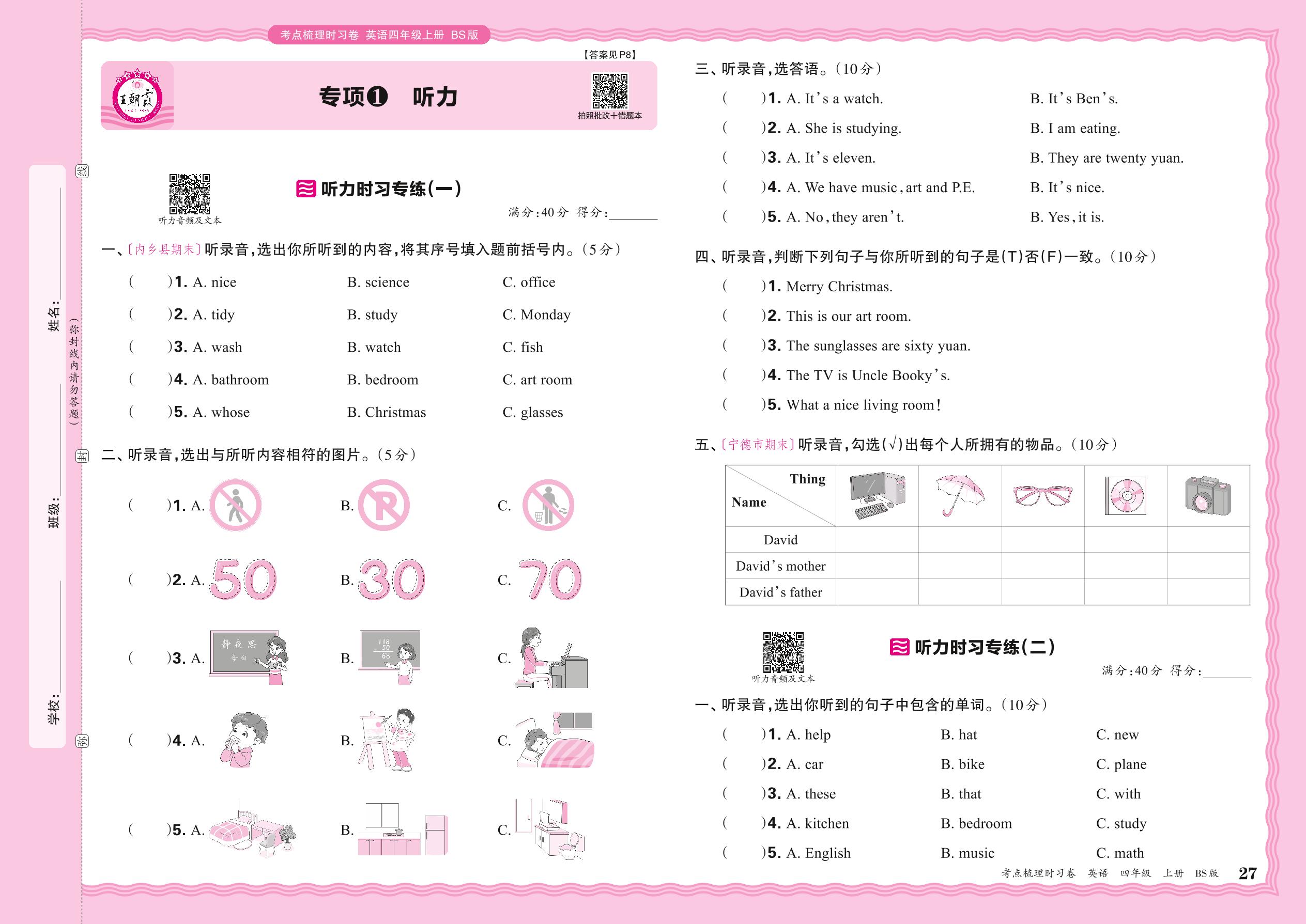 2024秋上册四年级英语北师版 期末专项卷KD版·听力【1】