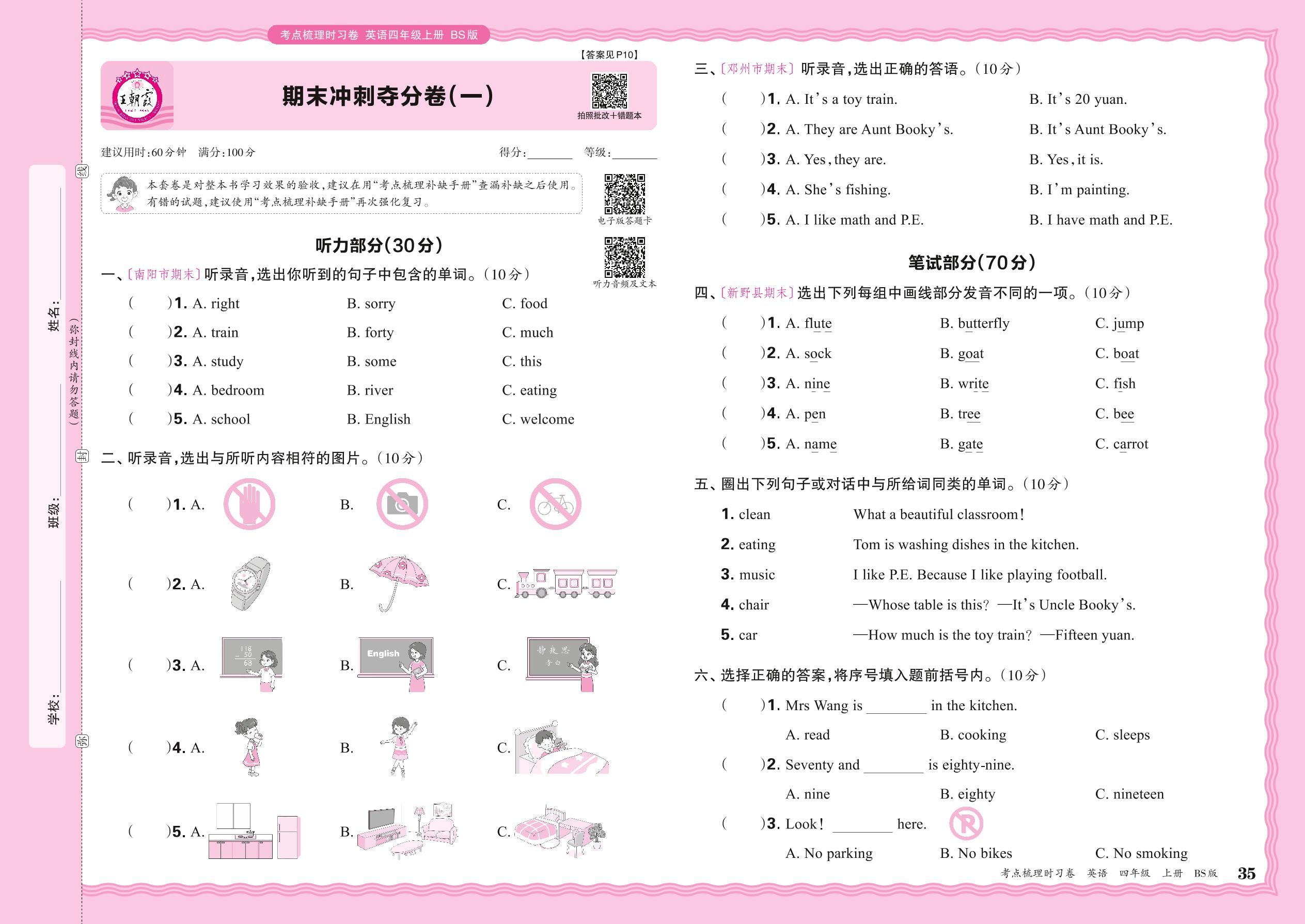 2024秋上册四年级英语北师版 期末冲刺夺分卷(一)