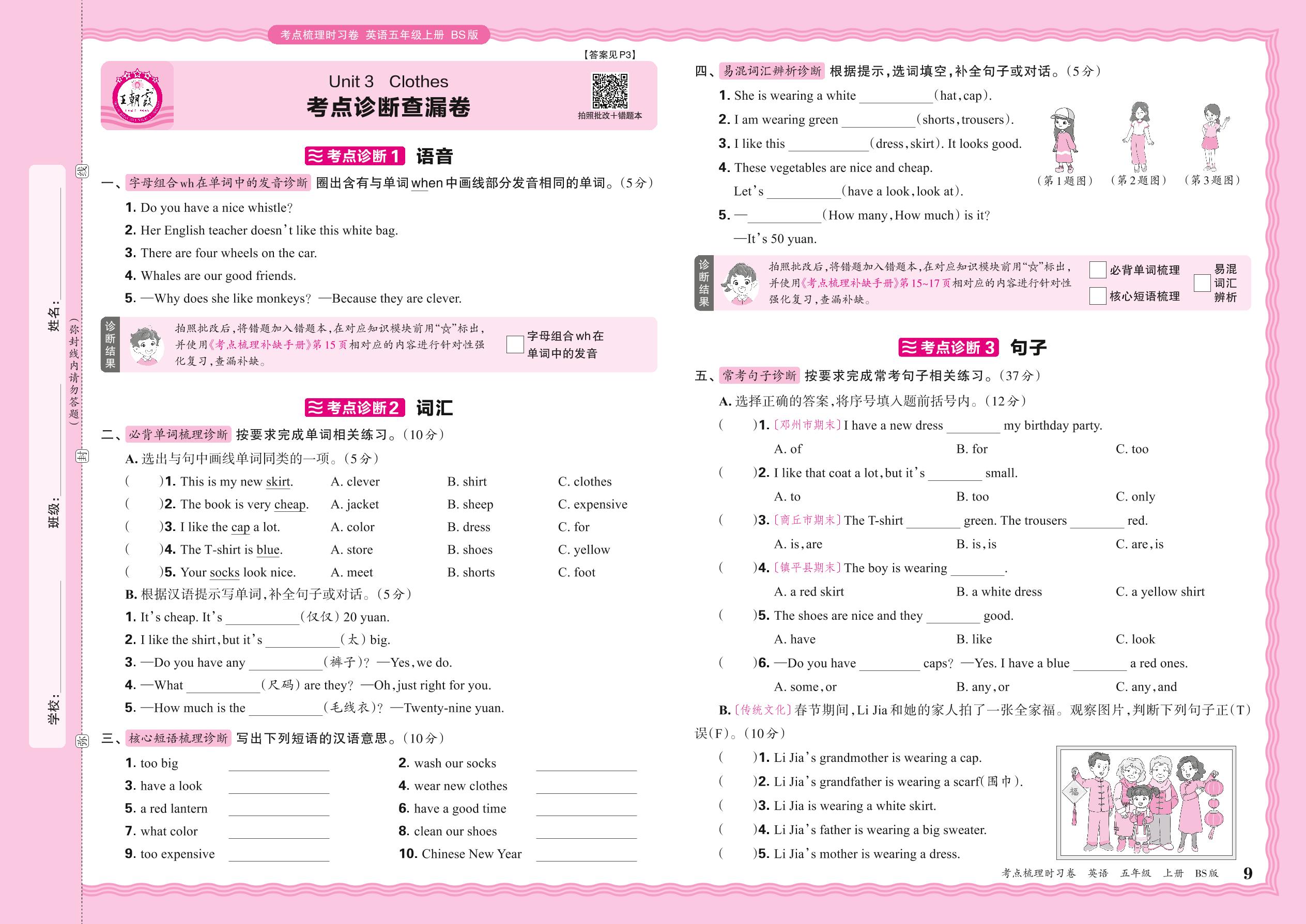 2024秋上册五年级英语北师版 Unit 3 考点诊断查漏卷