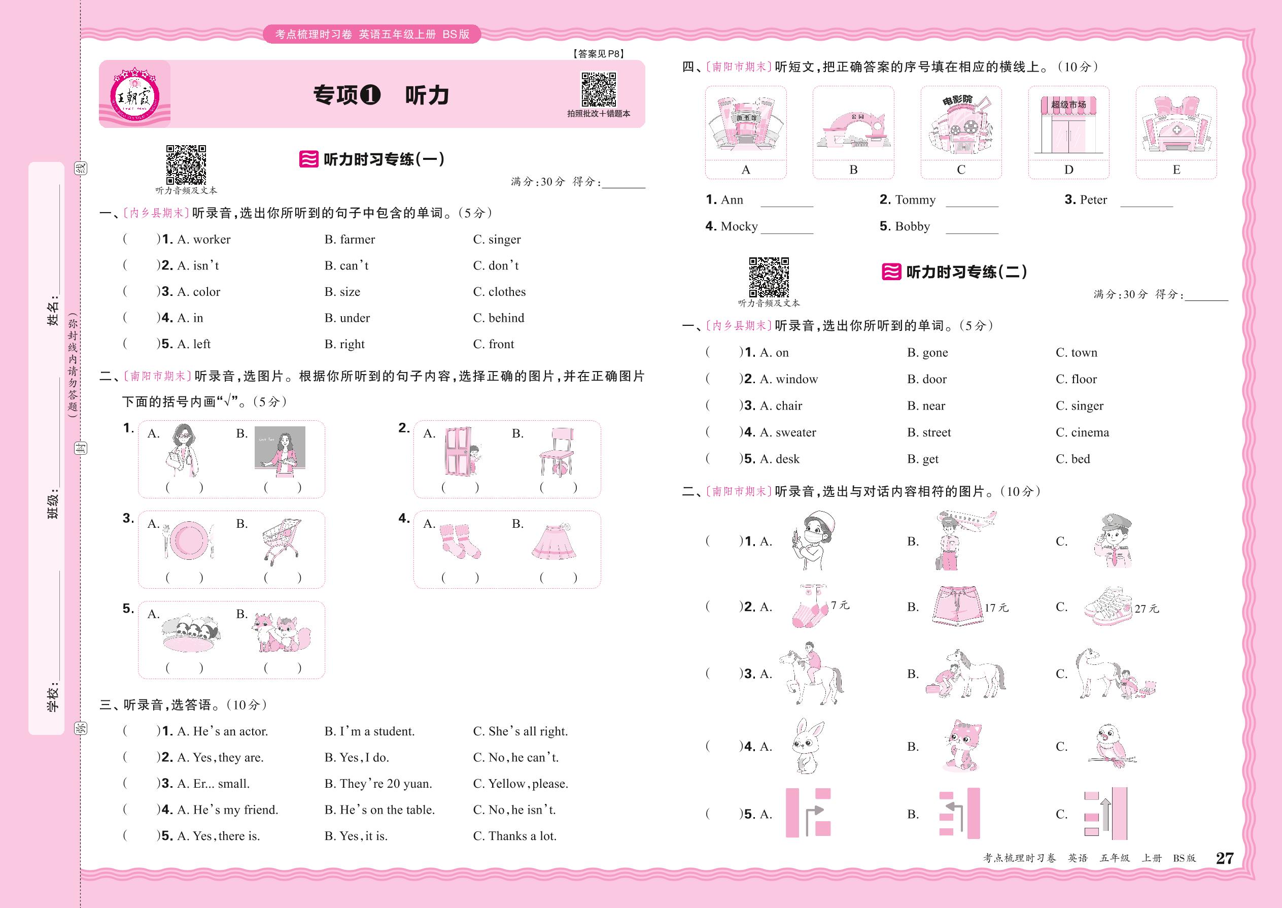 2024秋上册五年级英语北师版 期末专项卷KD版·听力【1】
