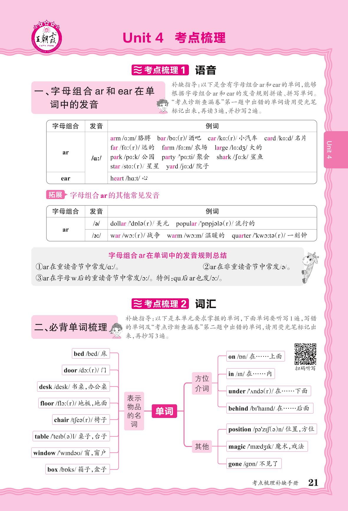 2024秋上册五年级英语北师版 考点梳理补缺手册——Unit 4 Position