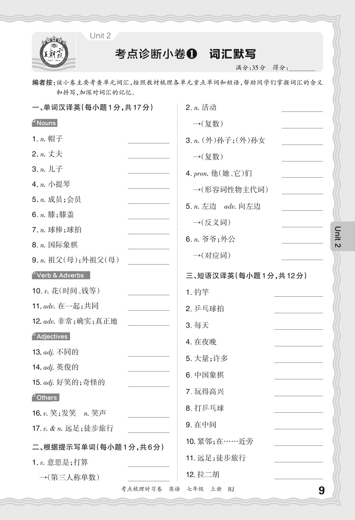 2024秋上册七年级英语人教版 Unit 2 考点诊断小卷1 词汇默写_R240827094832711