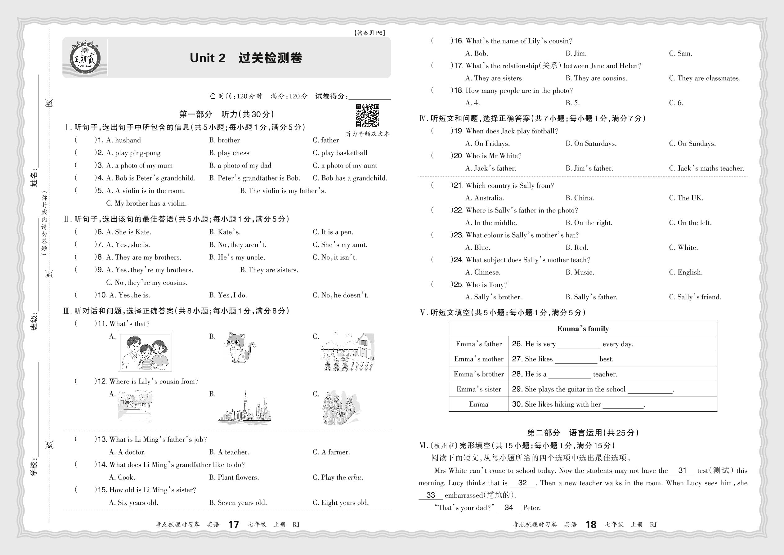 2024秋上册七年级英语人教版 Unit 2 过关检测卷_R240827094843435