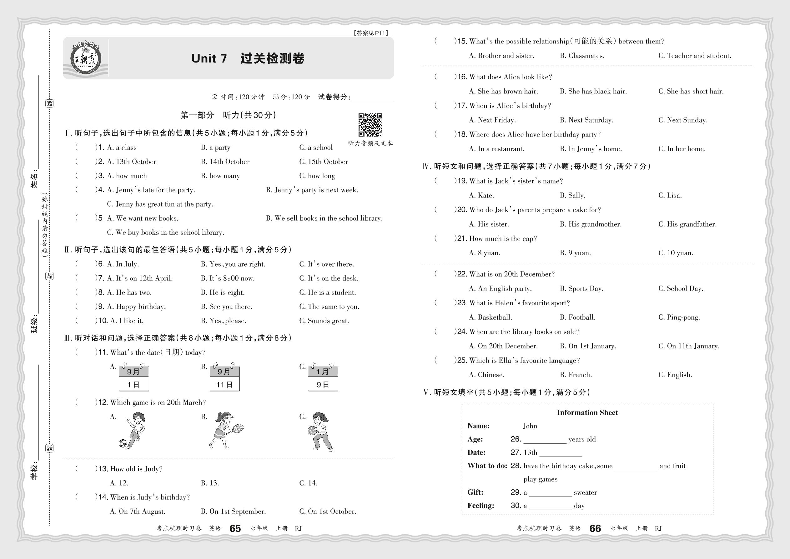 七年级英语人教版(2024)上册单元卷