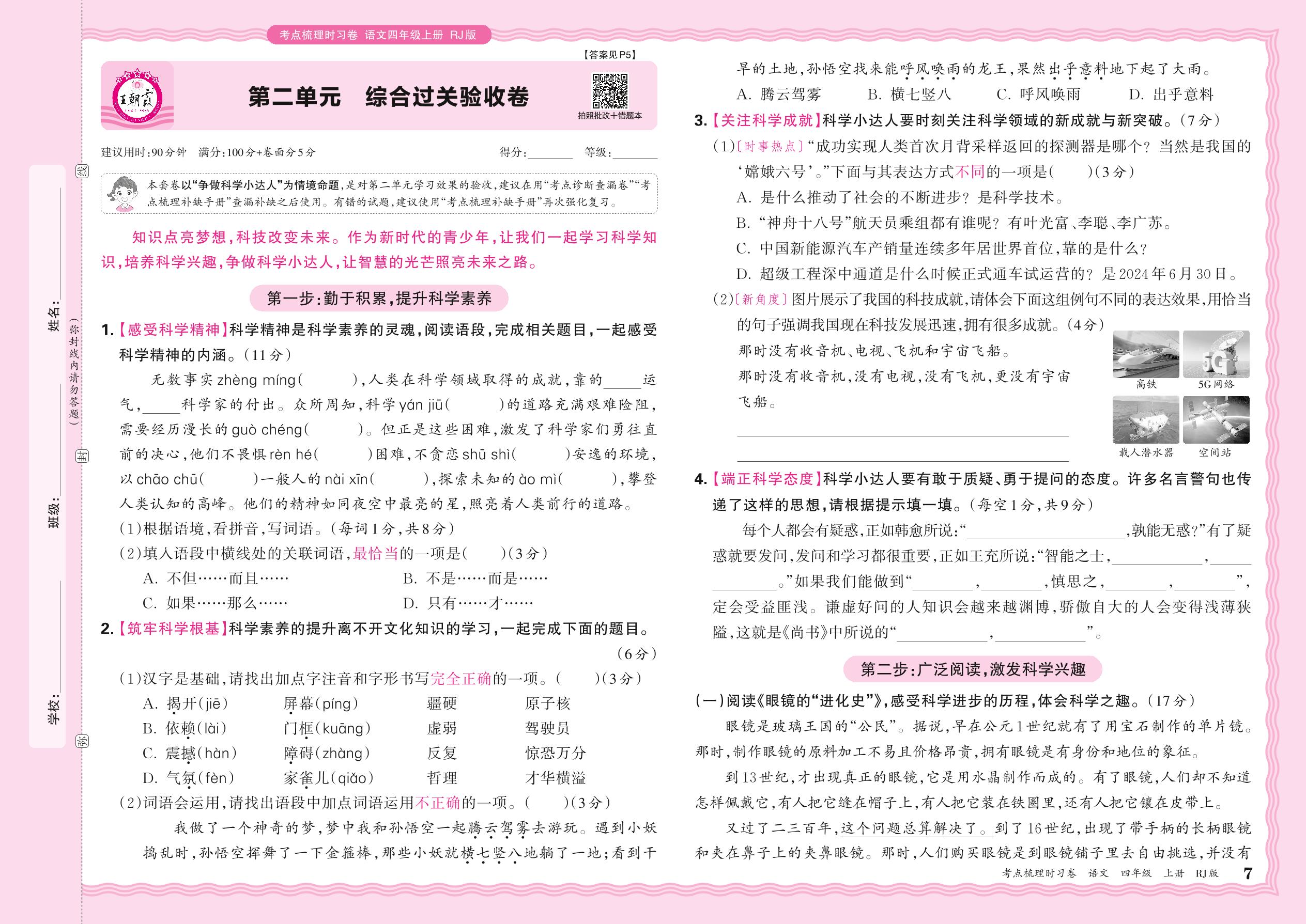 2024秋上册四年级语文人教版 第二单元 综合过关验收卷