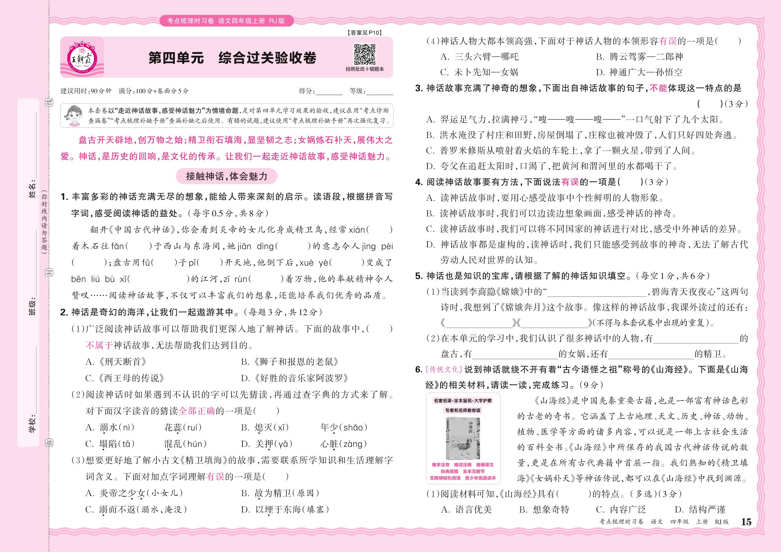 2024秋上册四年级语文人教版 第四单元 综合过关验收卷