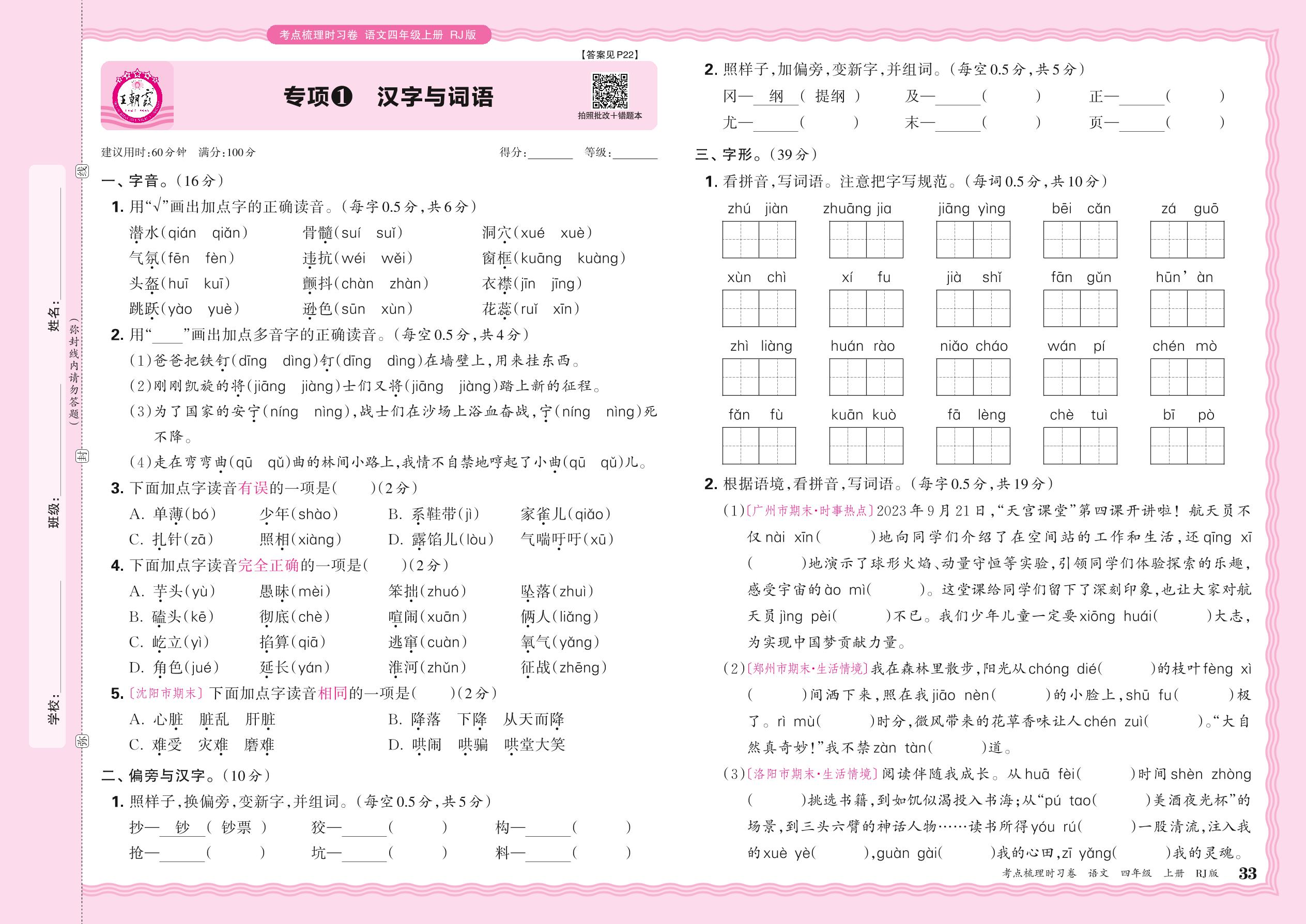 2024秋上册四年级语文人教版 期末专项卷KD版·汉字与词语【1】