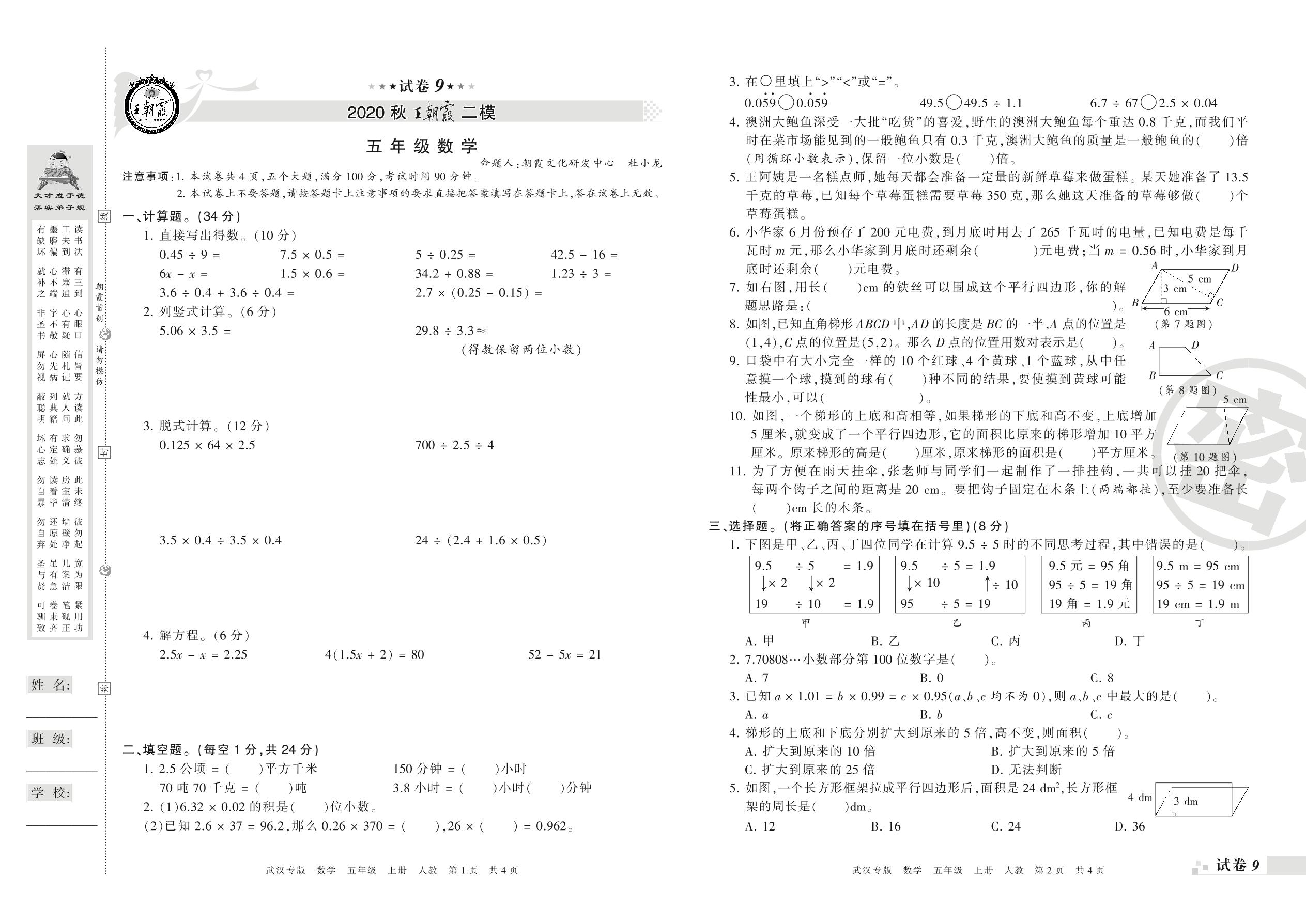 王朝霞期末模拟卷五年级上册数学(人教版)_R210804163813【9】