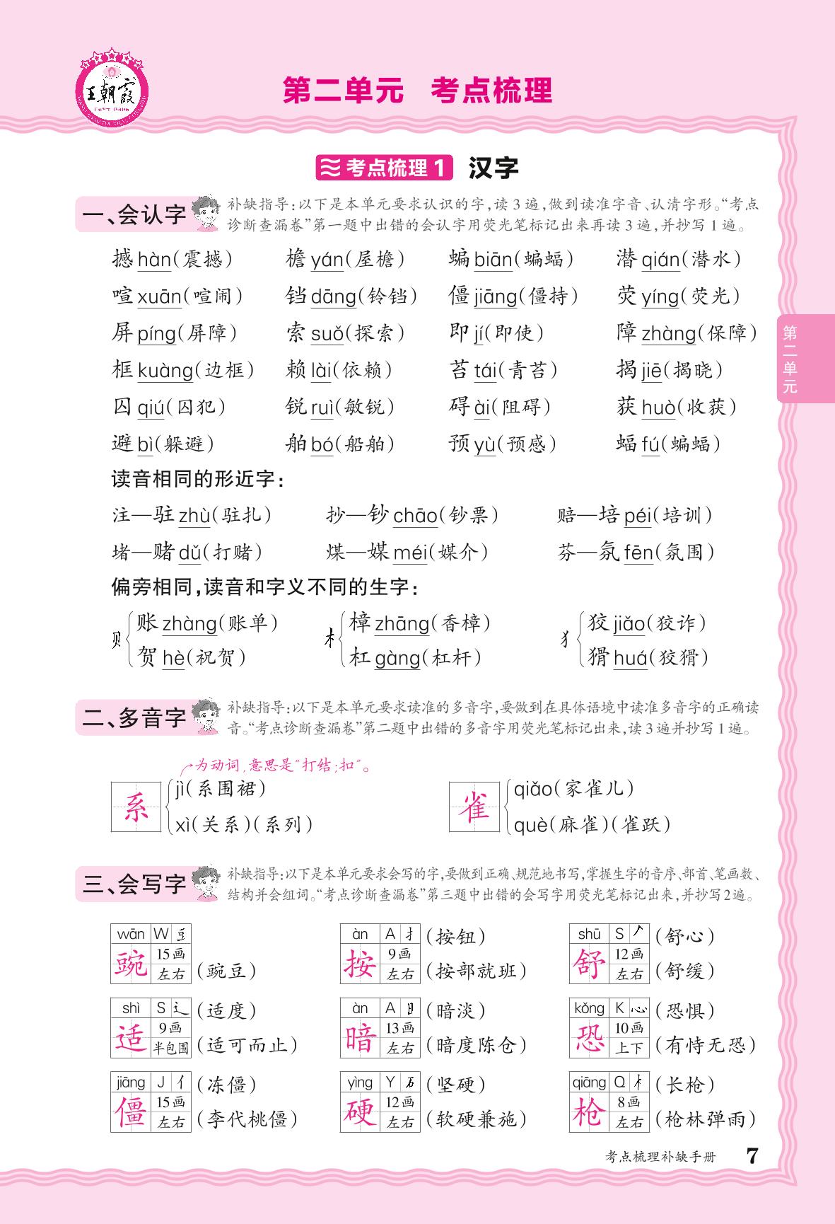 2024秋上册四年级语文人教版 考点梳理补缺手册——第二单元