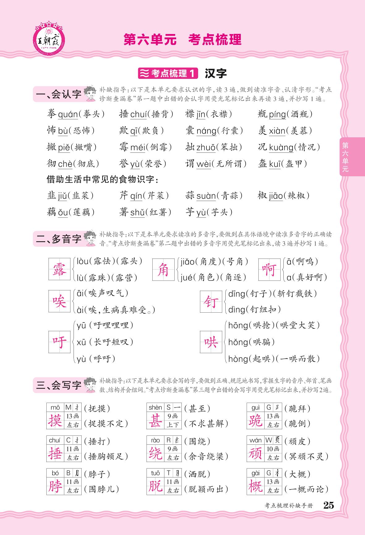 2024秋上册四年级语文人教版 考点梳理补缺手册——第六单元