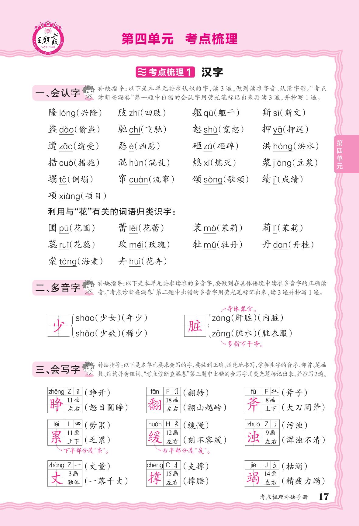 2024秋上册四年级语文人教版 考点梳理补缺手册——第四单元