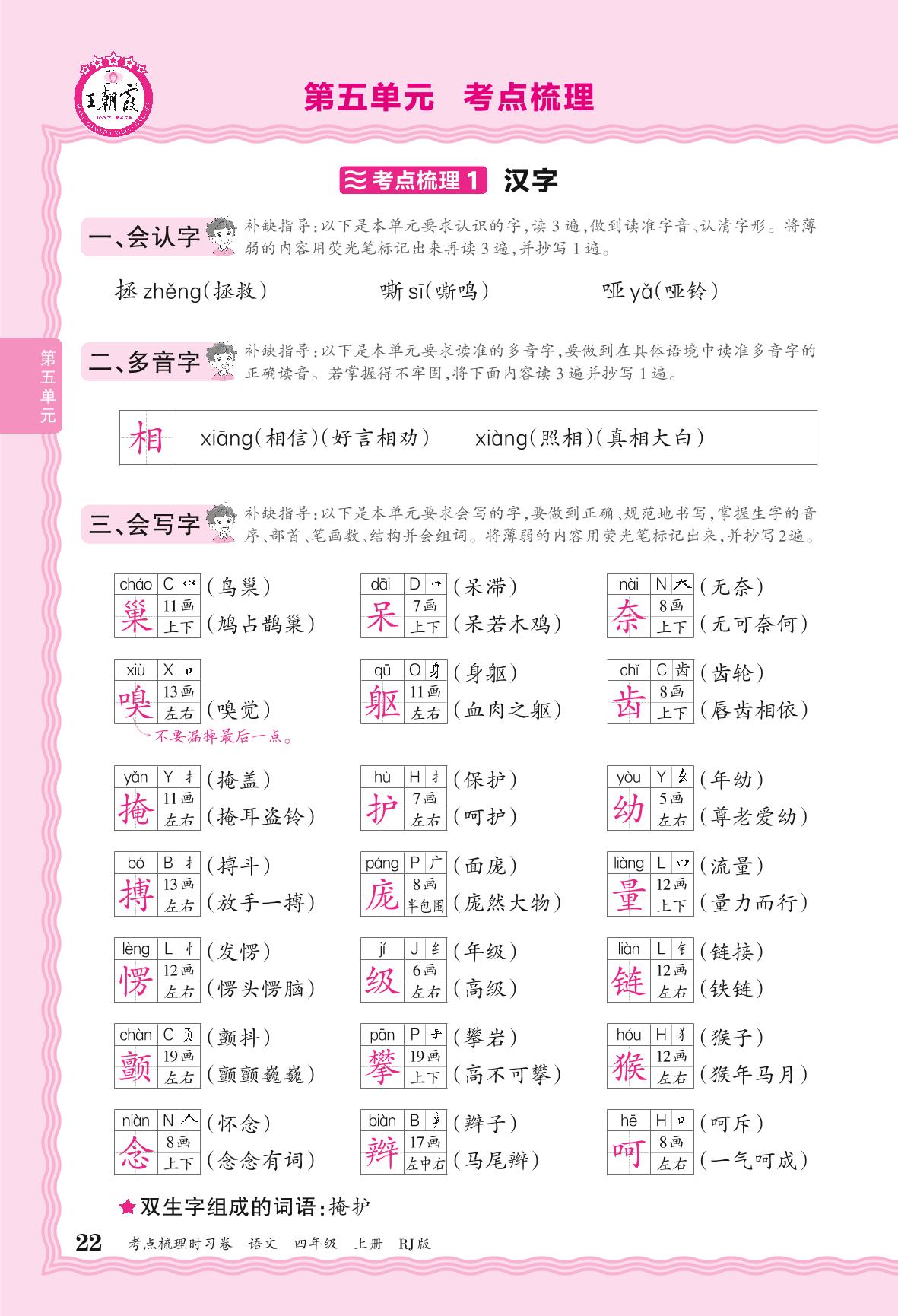 2024秋上册四年级语文人教版 考点梳理补缺手册——第五单元