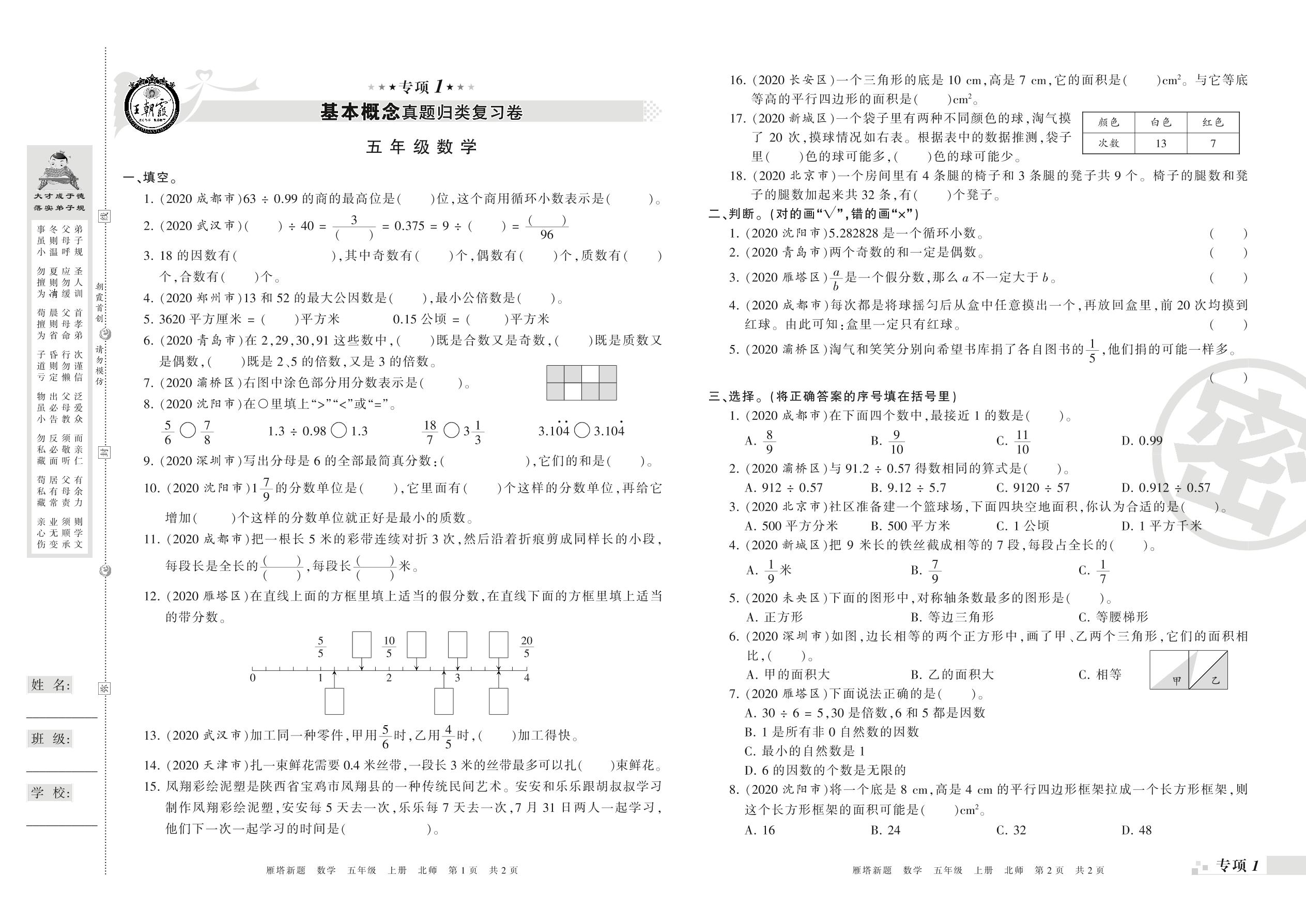 王朝霞期末专项卷——基本概念、计算真题归类复习五年级上册数学(北师版)_R210804163824【0】