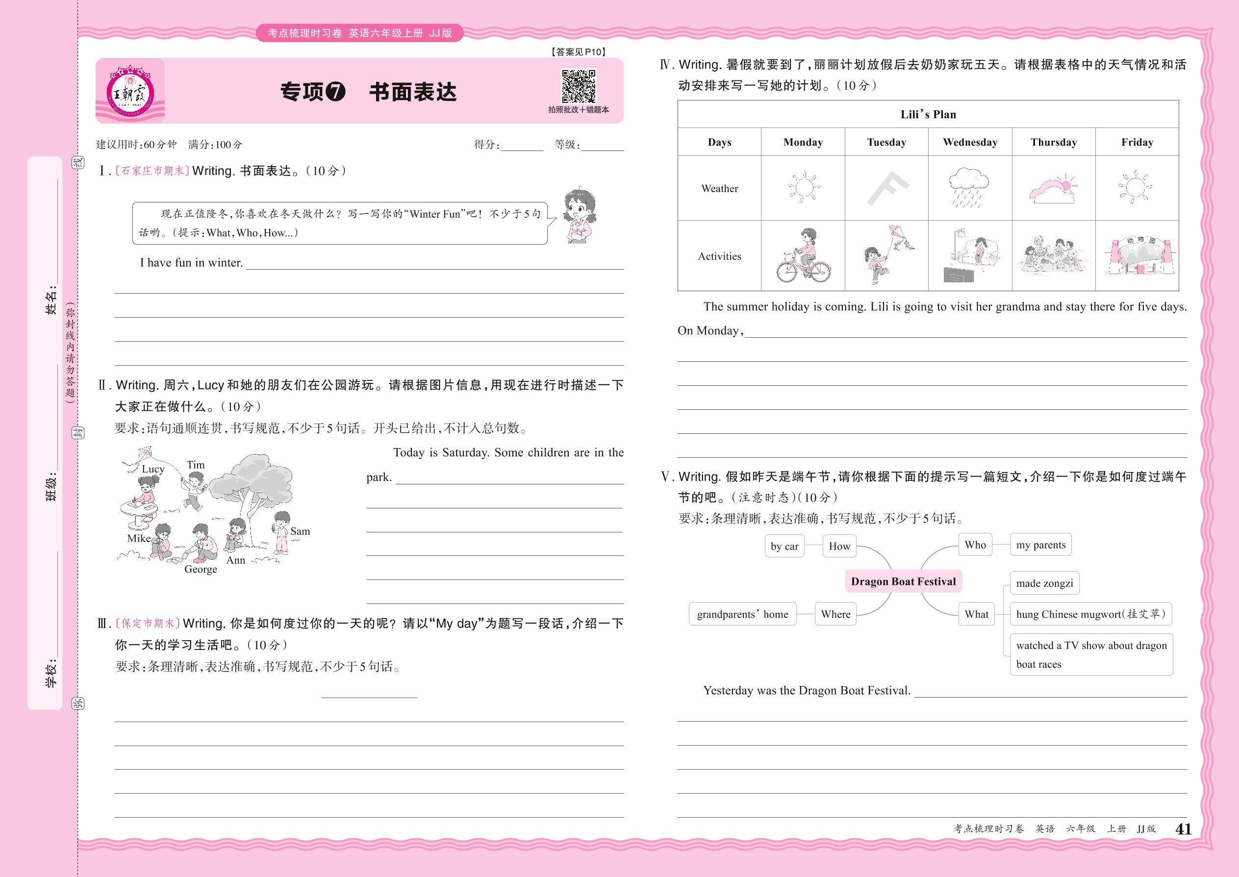 2024秋上册六年级英语冀教版 期末专项卷KD版·书面表达【7】