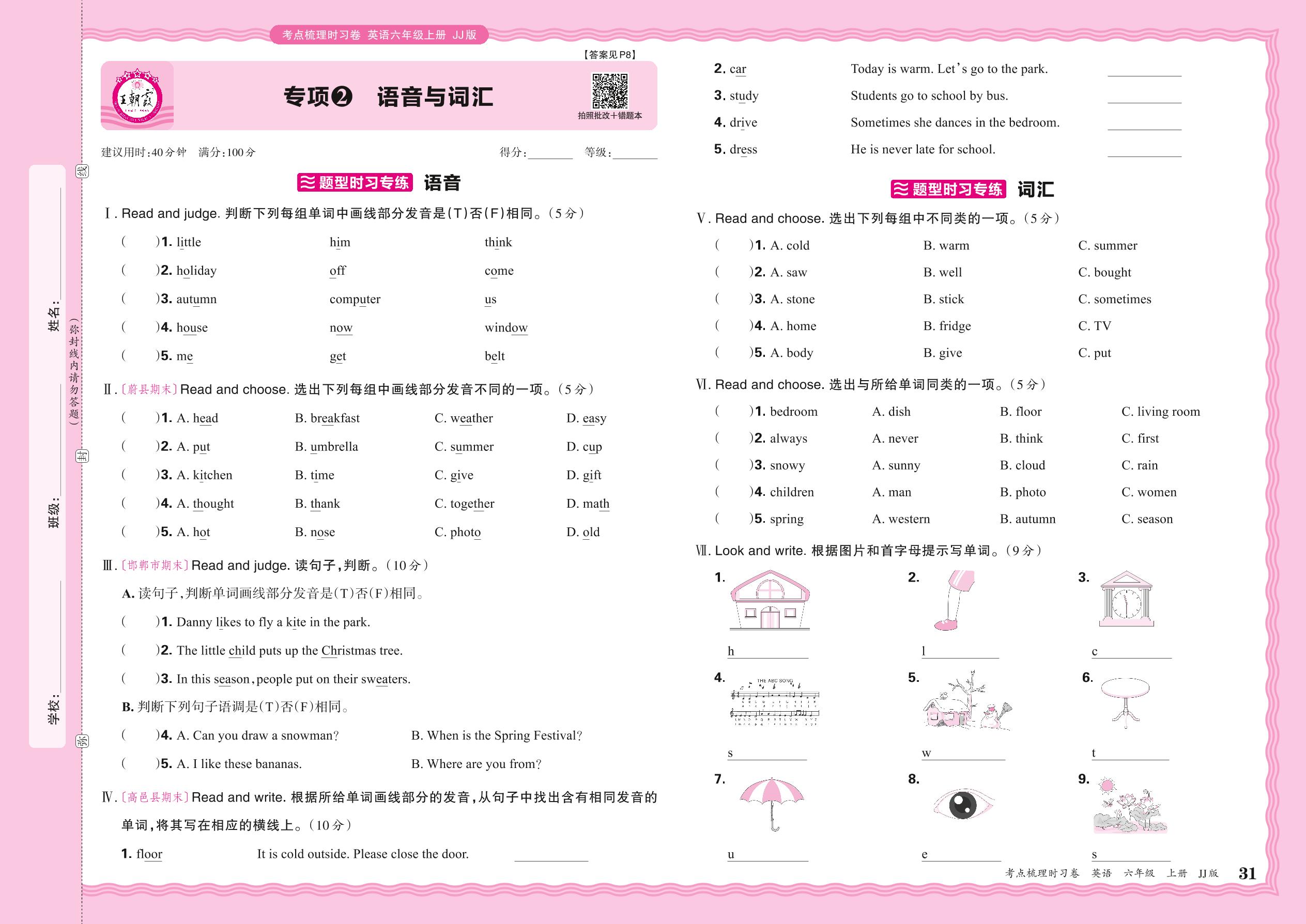 2024秋上册六年级英语冀教版 期末专项卷KD版·语音与词汇【2】